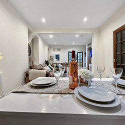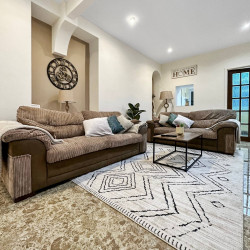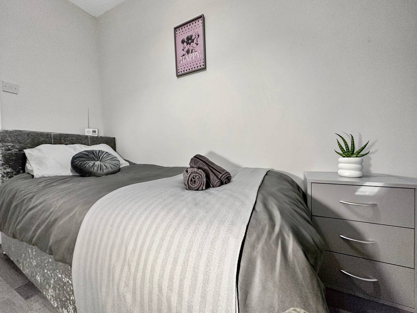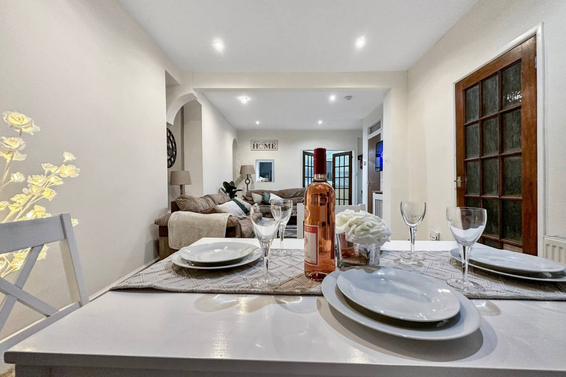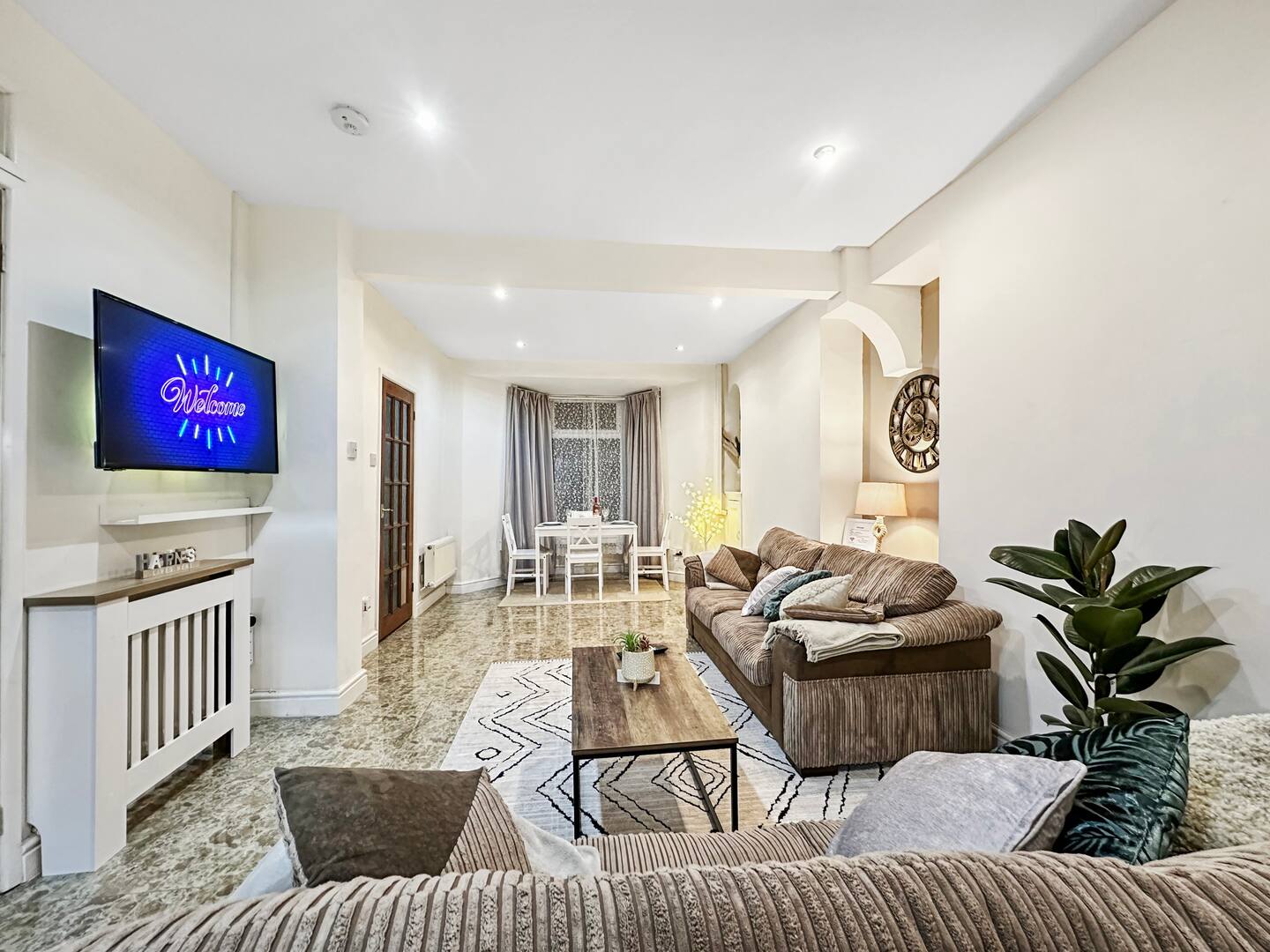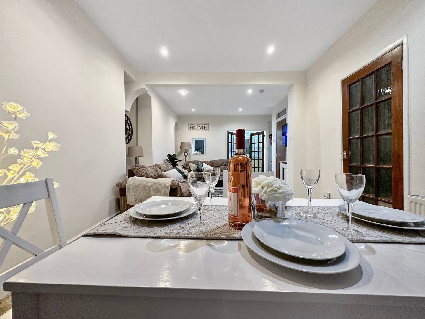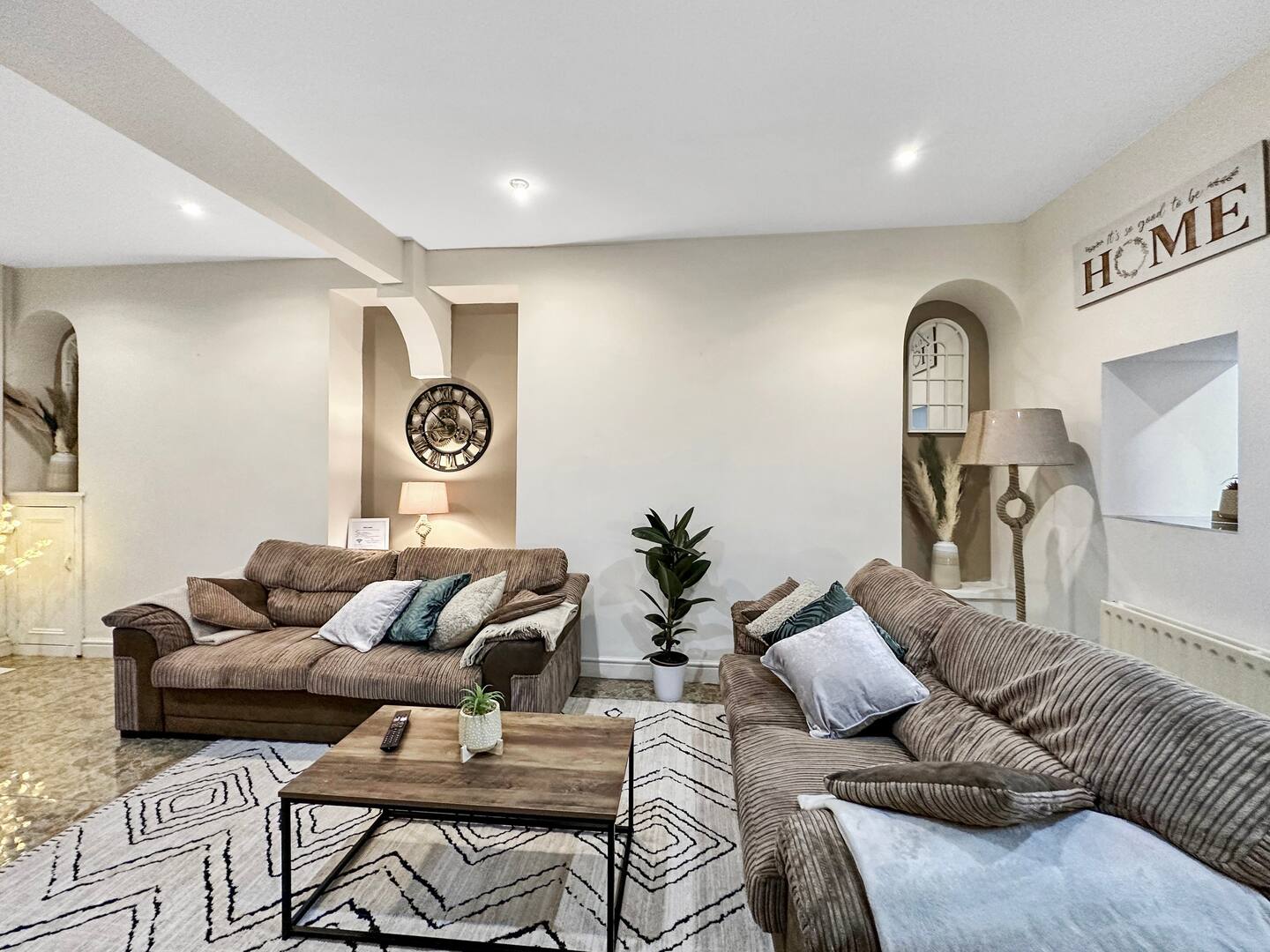 Downstairs is spacious with an open plan dinning and living area which flows through into the kitchen. The space also includes a 50inch Smart TV, downstairs cloakroom for convienience and Dedicated Workspace.