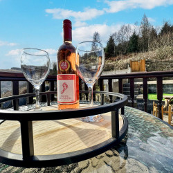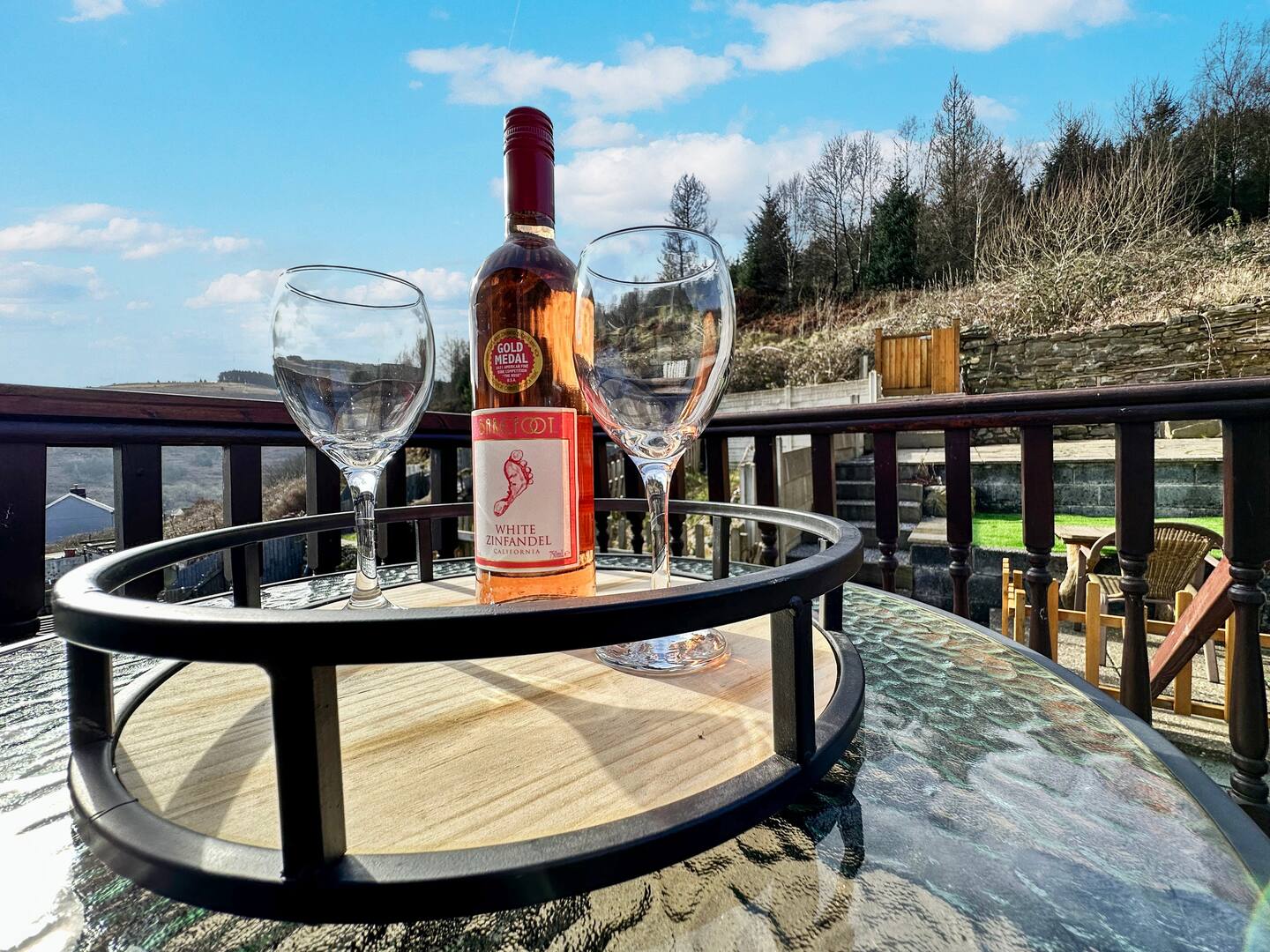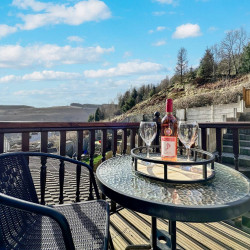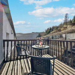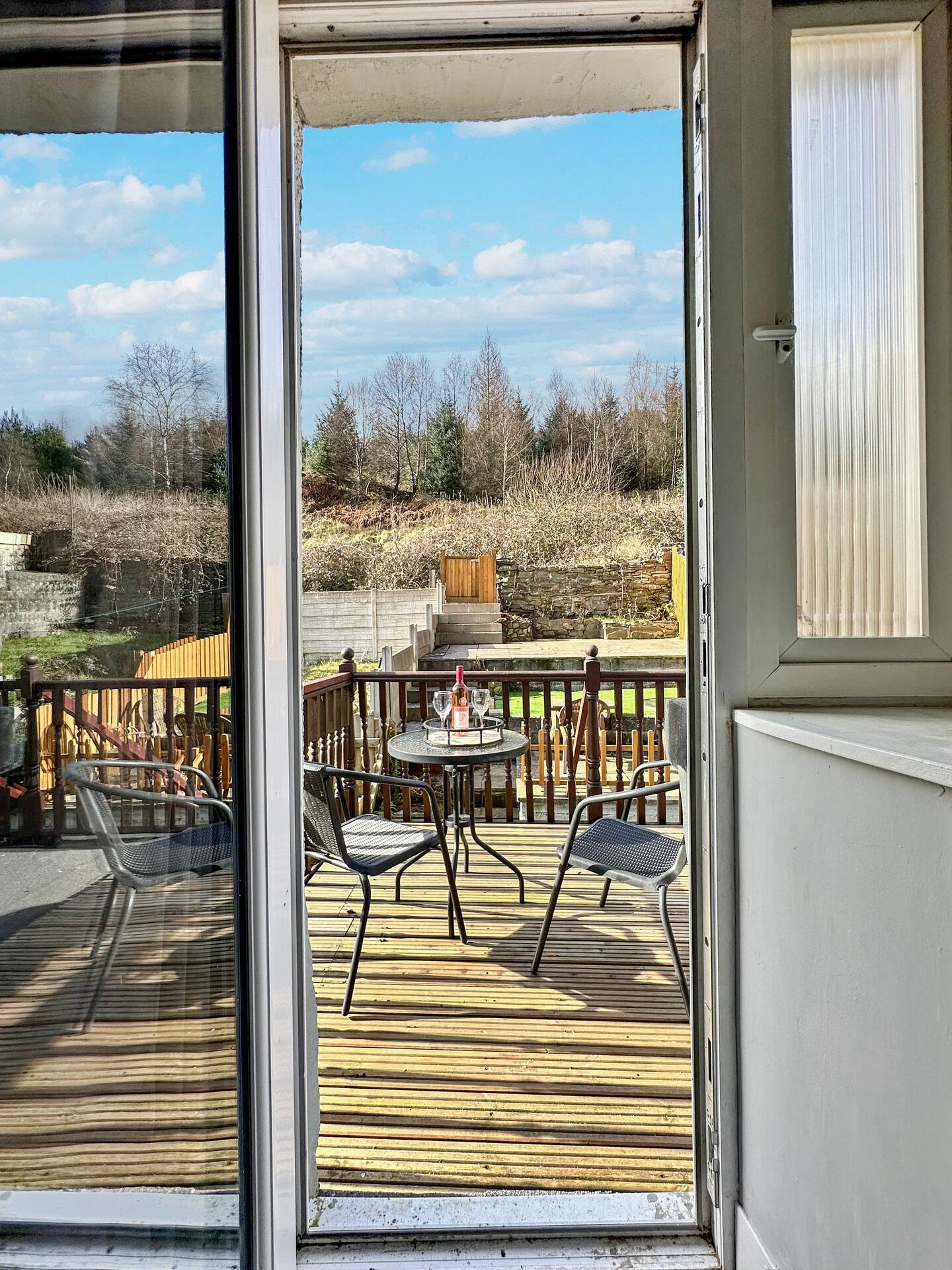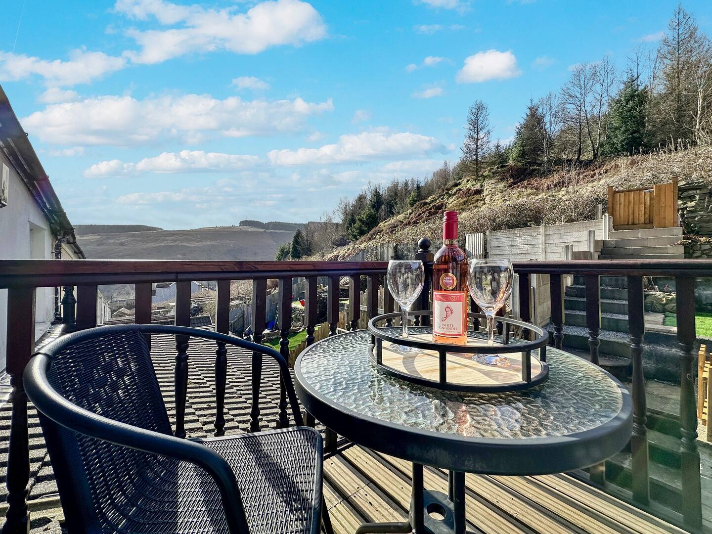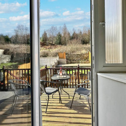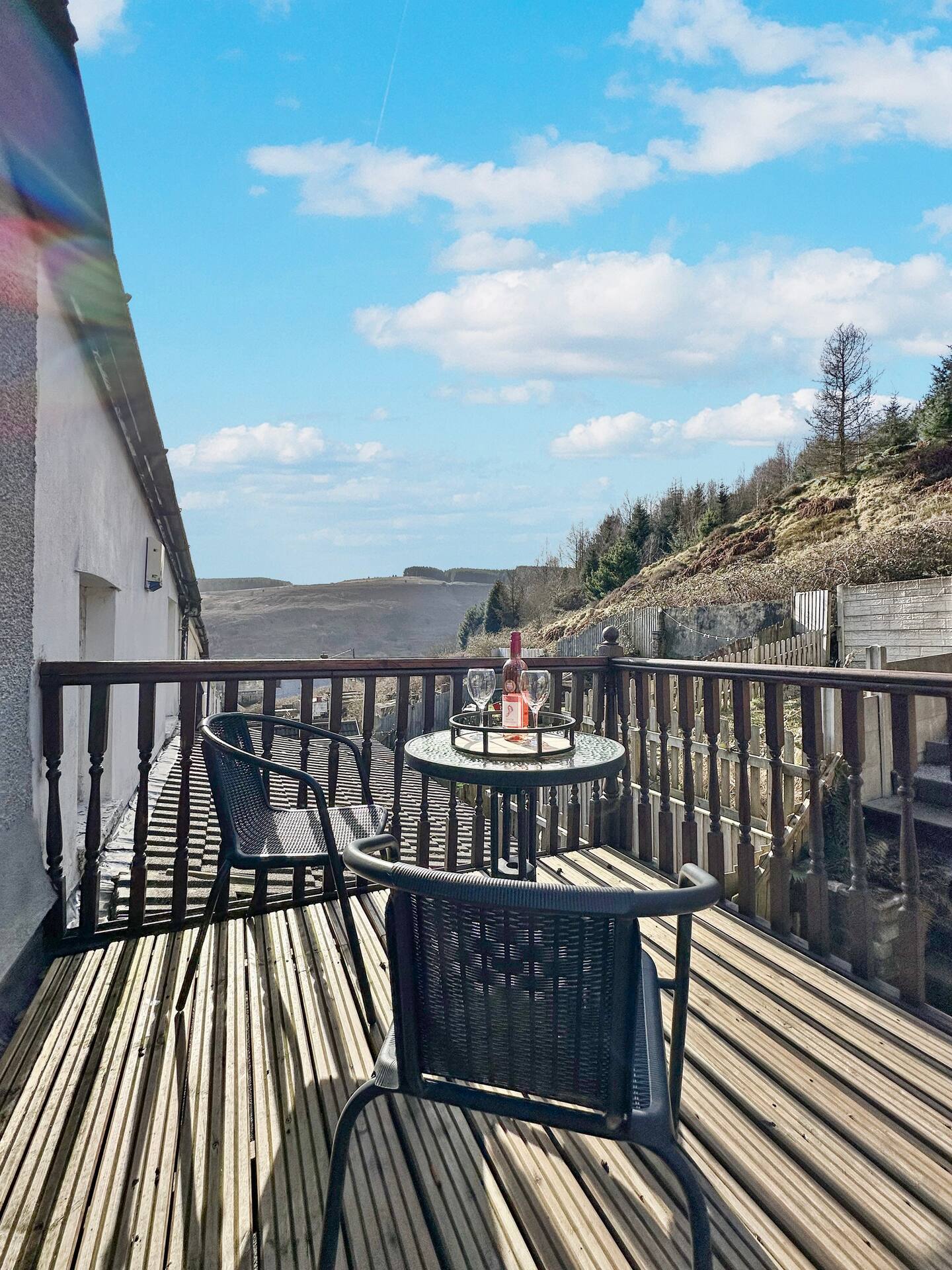 The back of house double bedroom features a walkout balcony equipped with table and chairs, an ideal space for taking in hilltop views over a morning coffee or stargazing over a glass of wine. There is also a Smart TV.