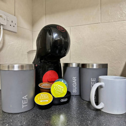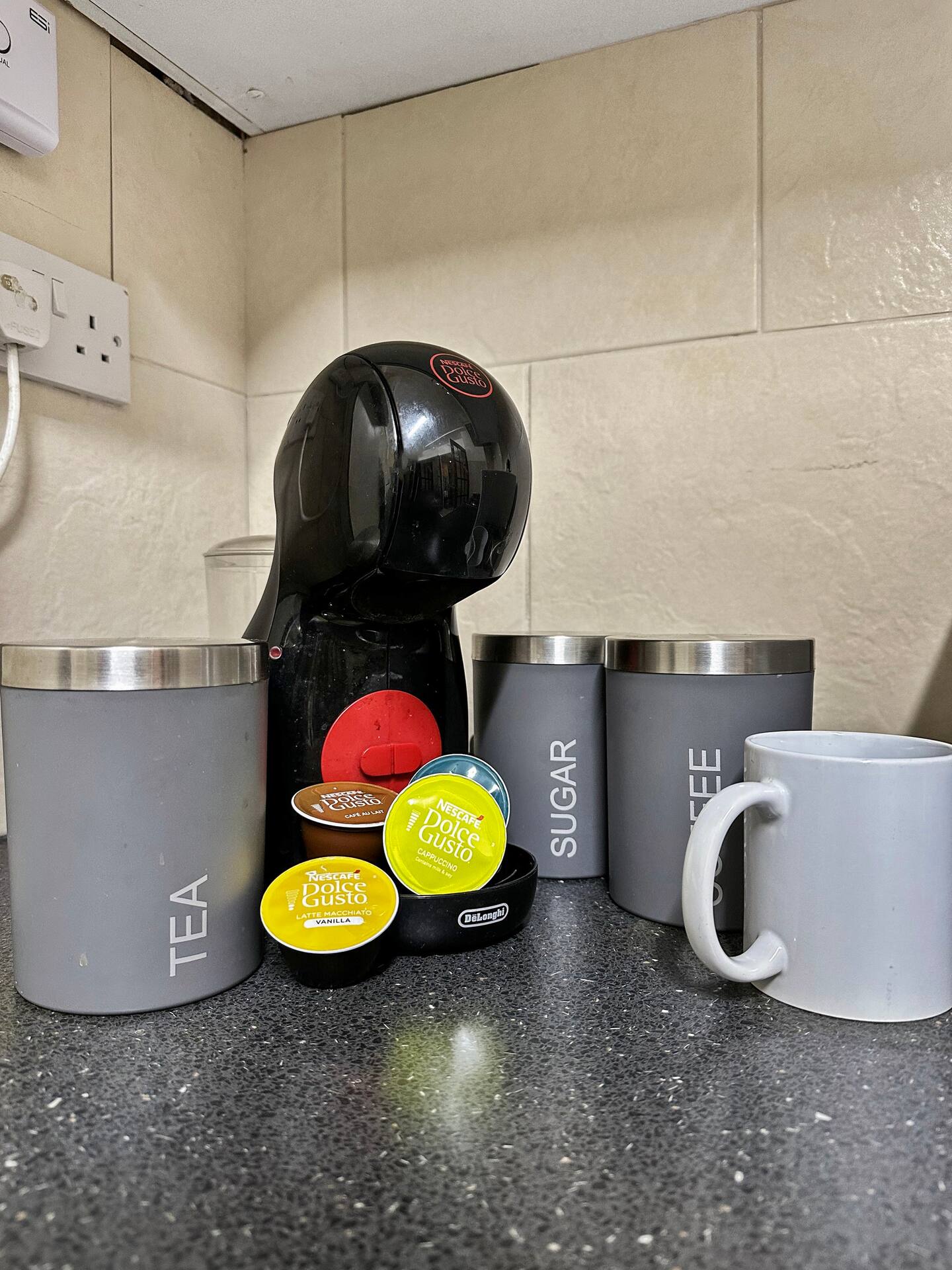 A fully equipped kitchen awaits to include features such as a Dolce Gusto coffee machine and a variety of complimentary Nescafé pods for the coffee connoisseurs in your group. Complimentary Tea bags are also provided.