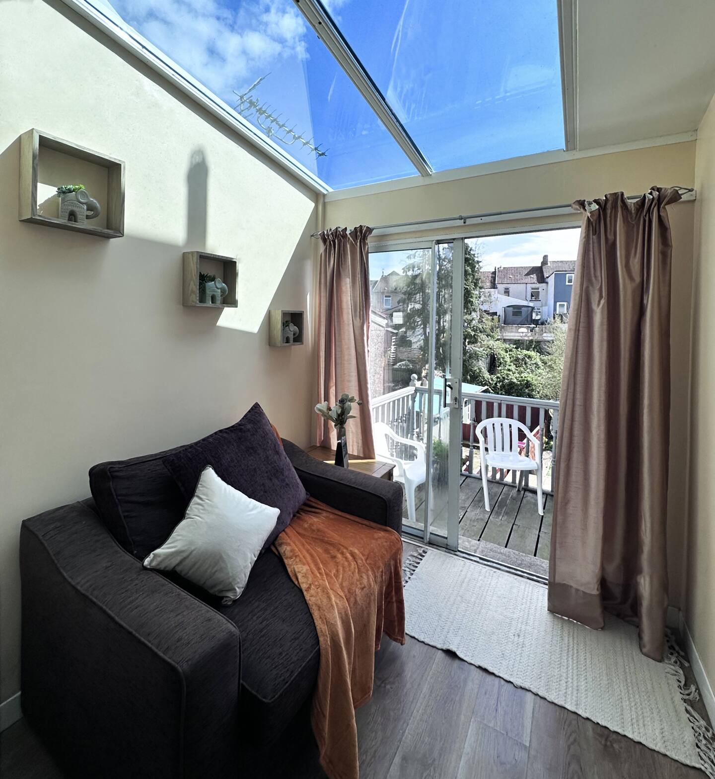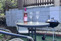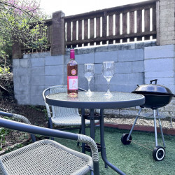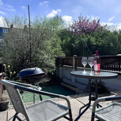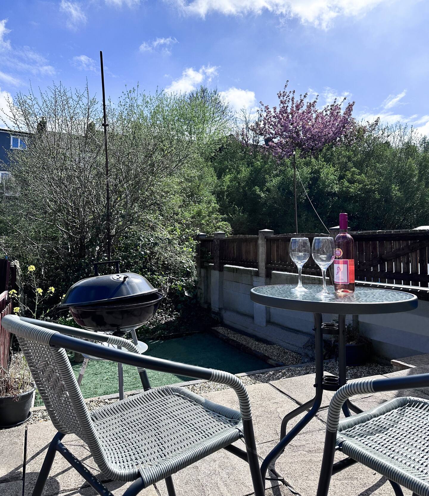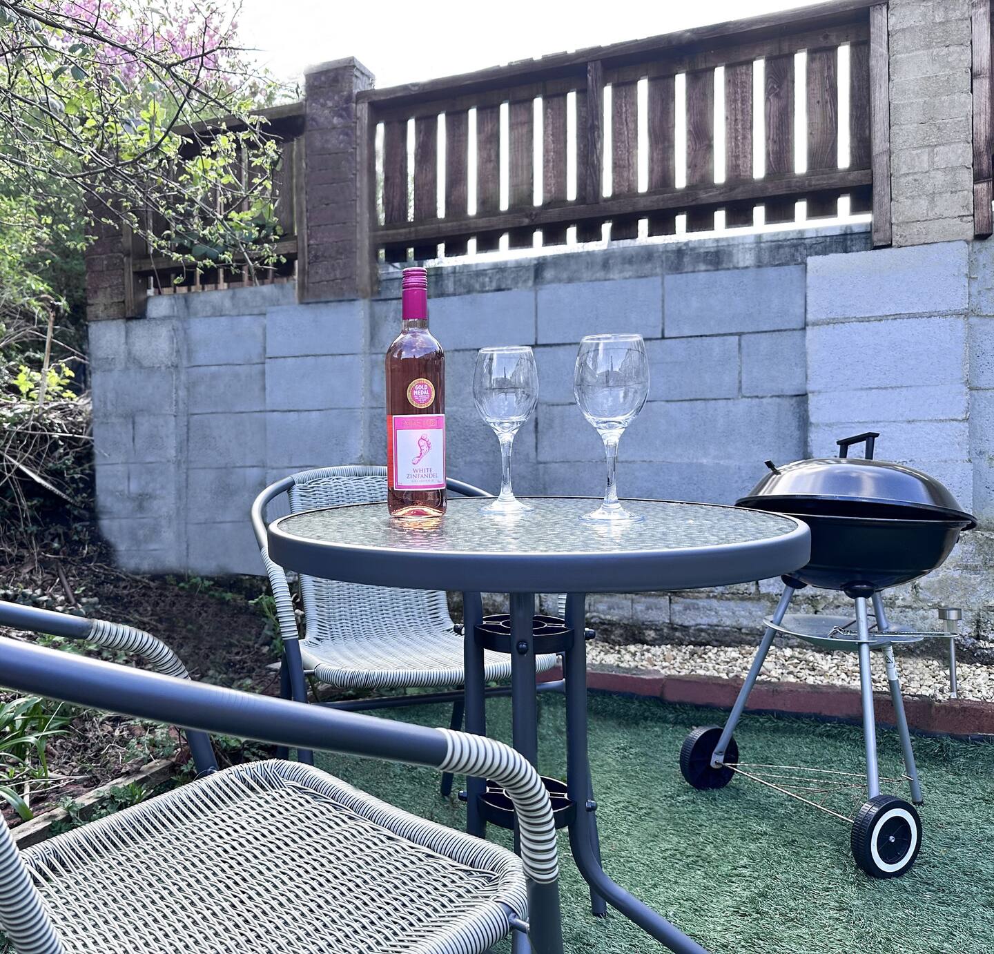 Kitchen back door leads to downstairs (steep – be careful) private garden space with BBQ and outside dining furniture.