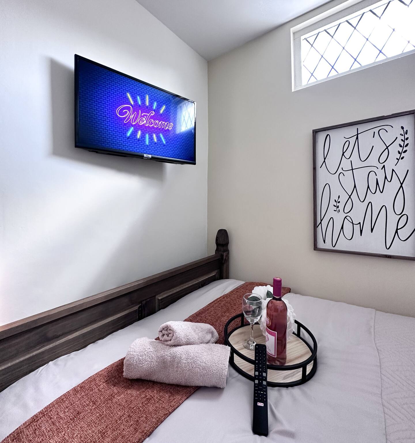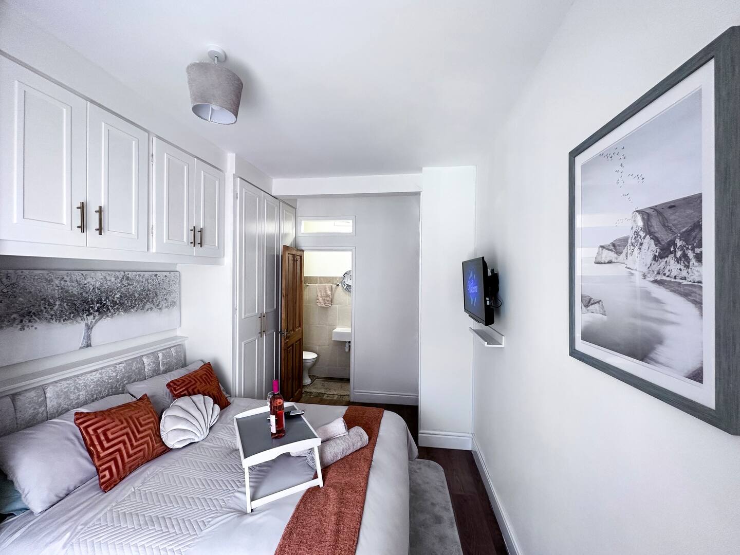 The master bedroom features a WC Ensuite, comfy double bed and Smart TV.