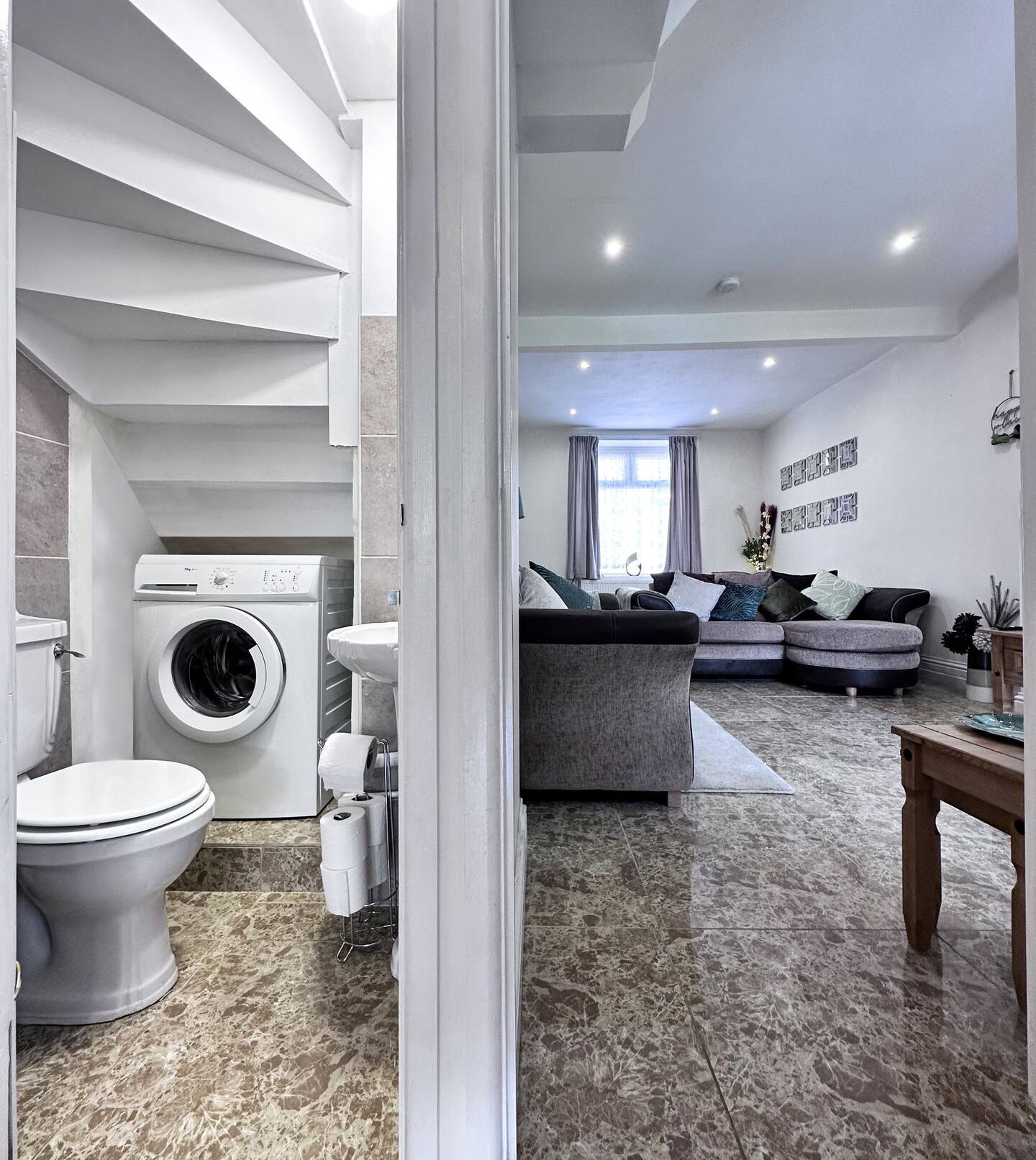 There is a downstairs WC cloakroom space with a laundry facilities.