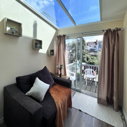 The living space leads through to a garden room conservatory with a walk out balcony area overlooking the back garden.