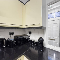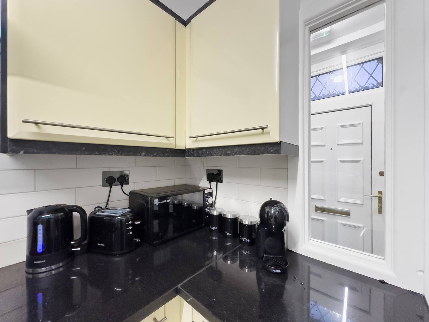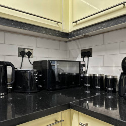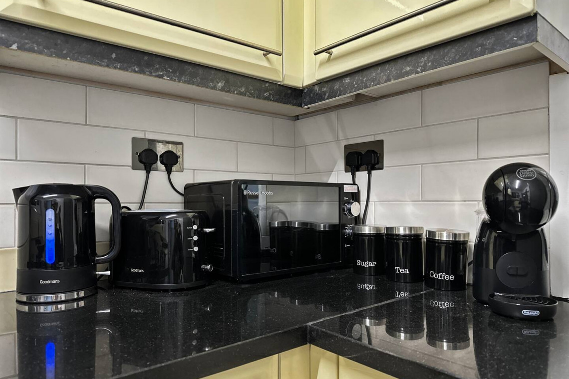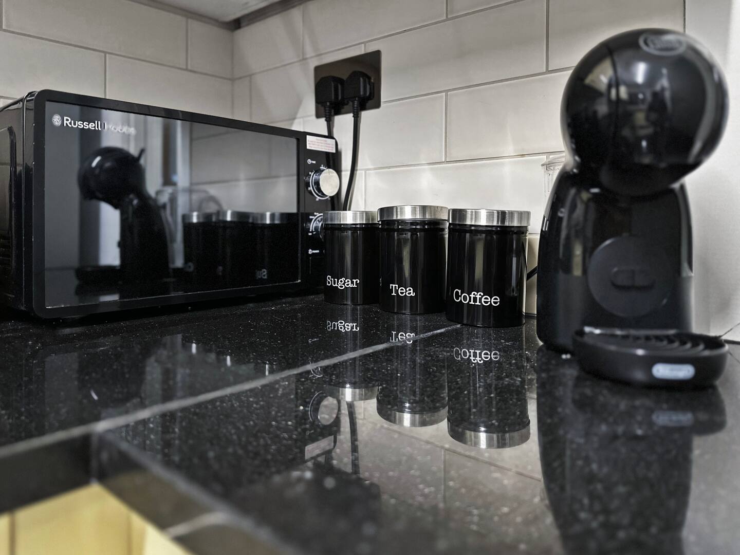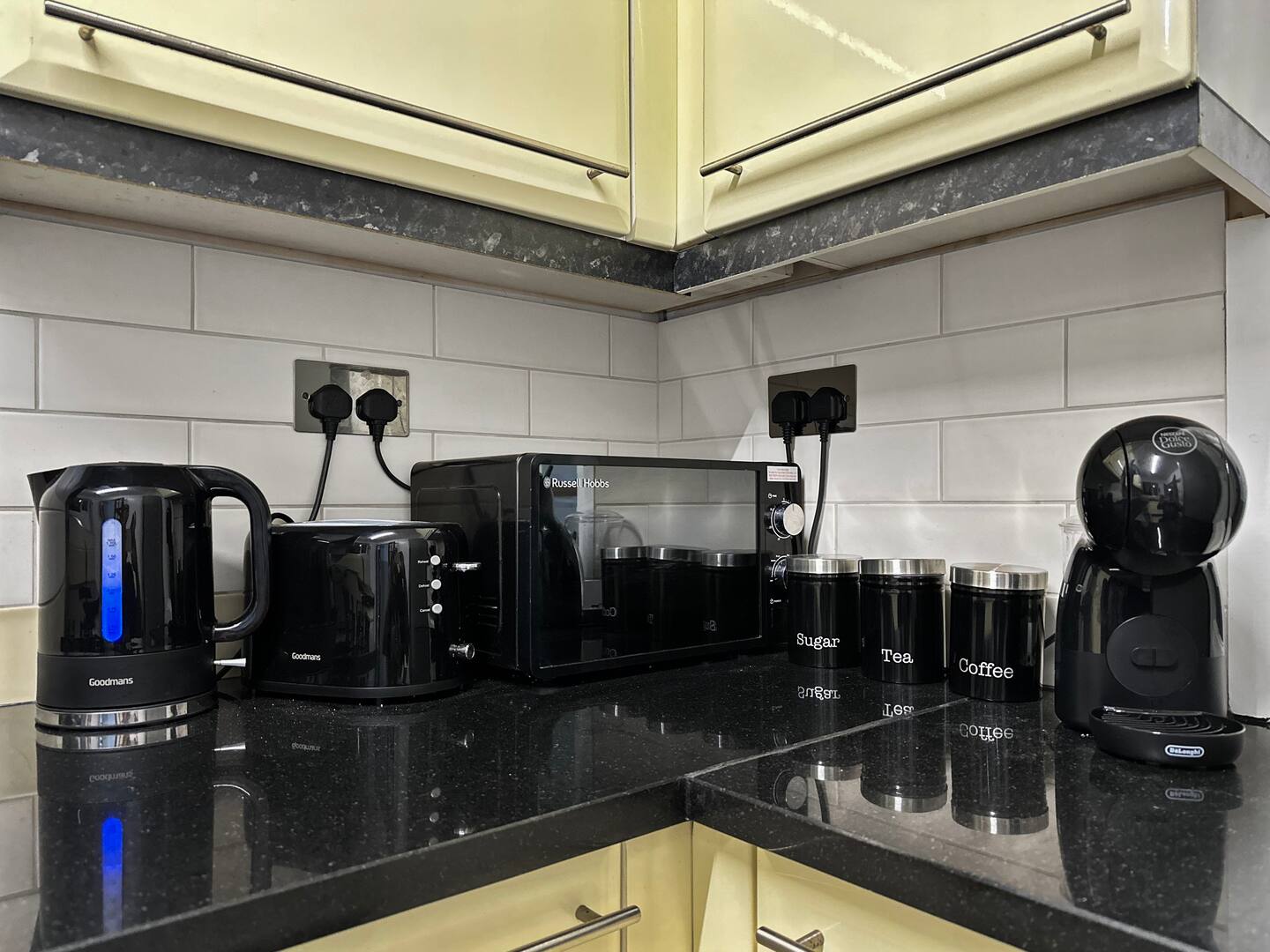 The living room flows into a fully equipped kitchen, to include features such as Dolce Gusto coffee machine and a variety of Nescafé pods for the coffee connoisseurs in your group. Complimentary Tea bags are also provided.