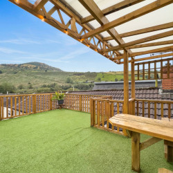 The communal rooftop garden boasts an illuminated gazebo with ample seating, providing a perfect sheltered spot for outdoor relaxation, nighttime star gazing, 180 degree hill views and also classic garden games (such as Giant Connect 4 or Jenga).