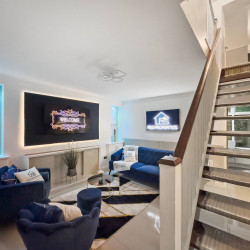 The space has all the modern creature comforts such as hi speed Wi-Fi, smart TV’s throughout, smart heating, PS4, indoor and outdoor games, foozeball table, mood lighting in all bedrooms, and a coffee machine.