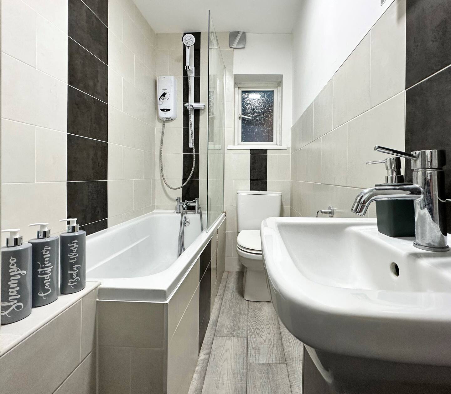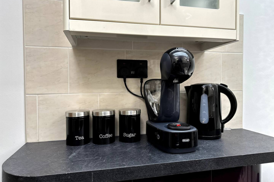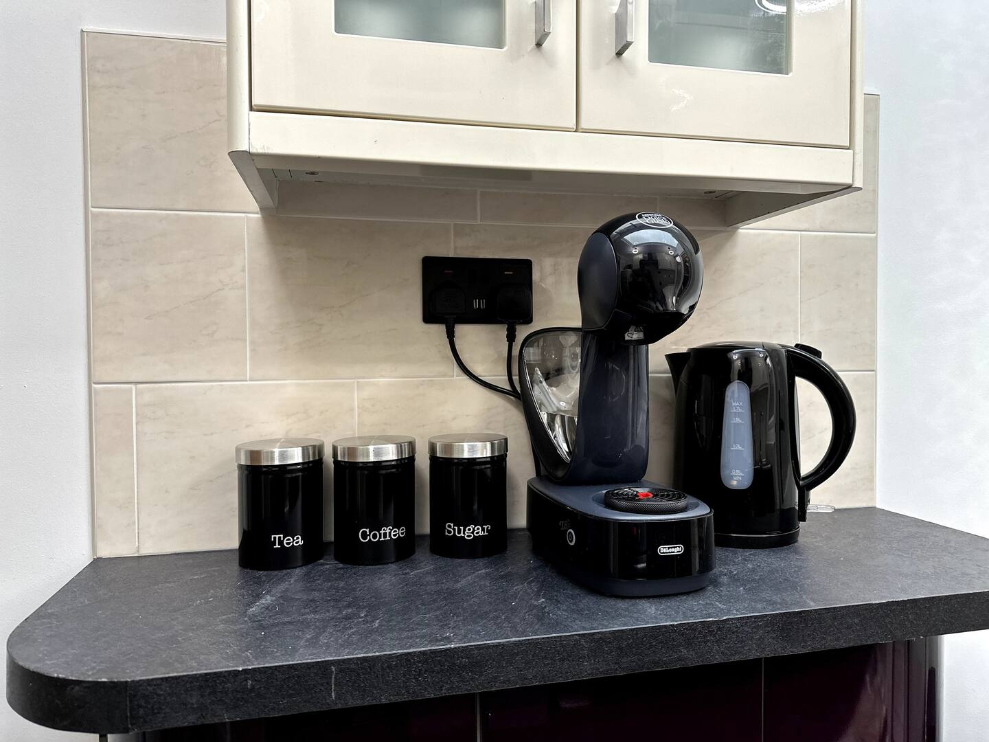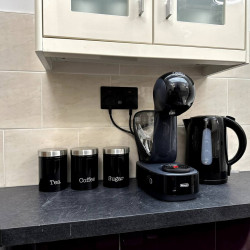 The apartment has a fully equipped kitchen, to include features such as Dolce Gusto coffee machine and a variety of Nescafé pods for the coffee connoisseurs in your group. Complimentary Tea bags are also provided.