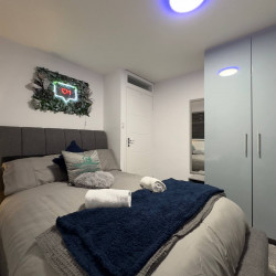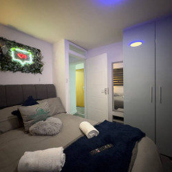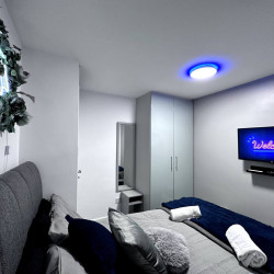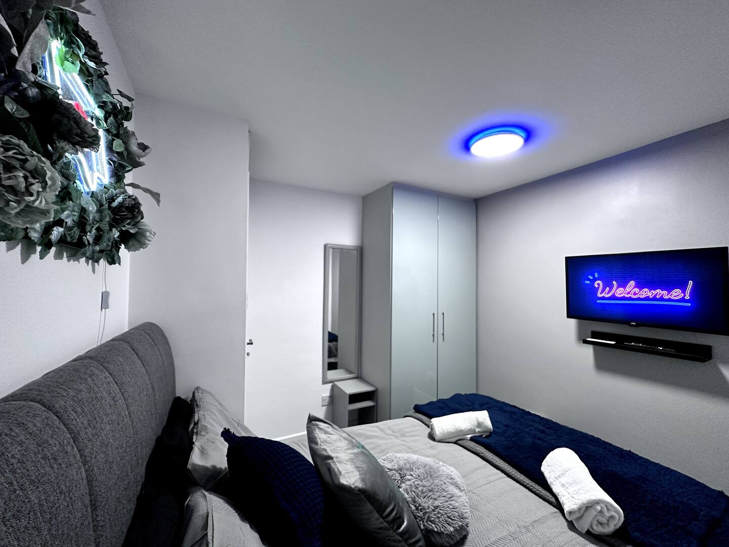 Both double bedrooms boast double beds with plush cushions for ultimate coziness. A SMART TV, mood lighting and ample storage for personal belongings.