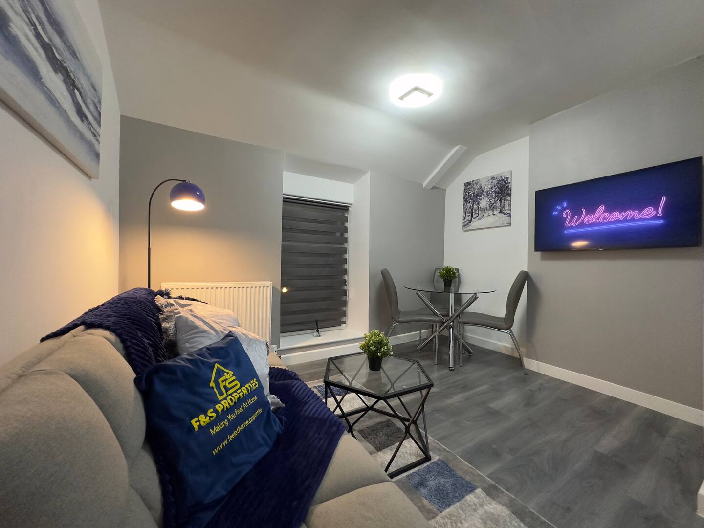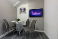 The living and dining room features a large SMART TV, coffee table and cosy sofa bed for that ultimate chill-factor.