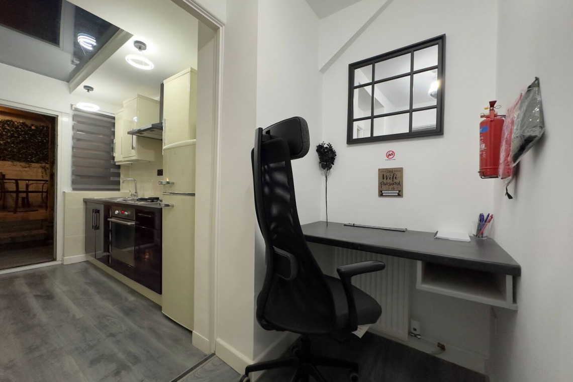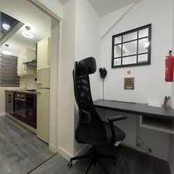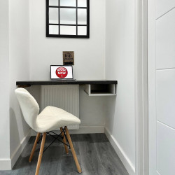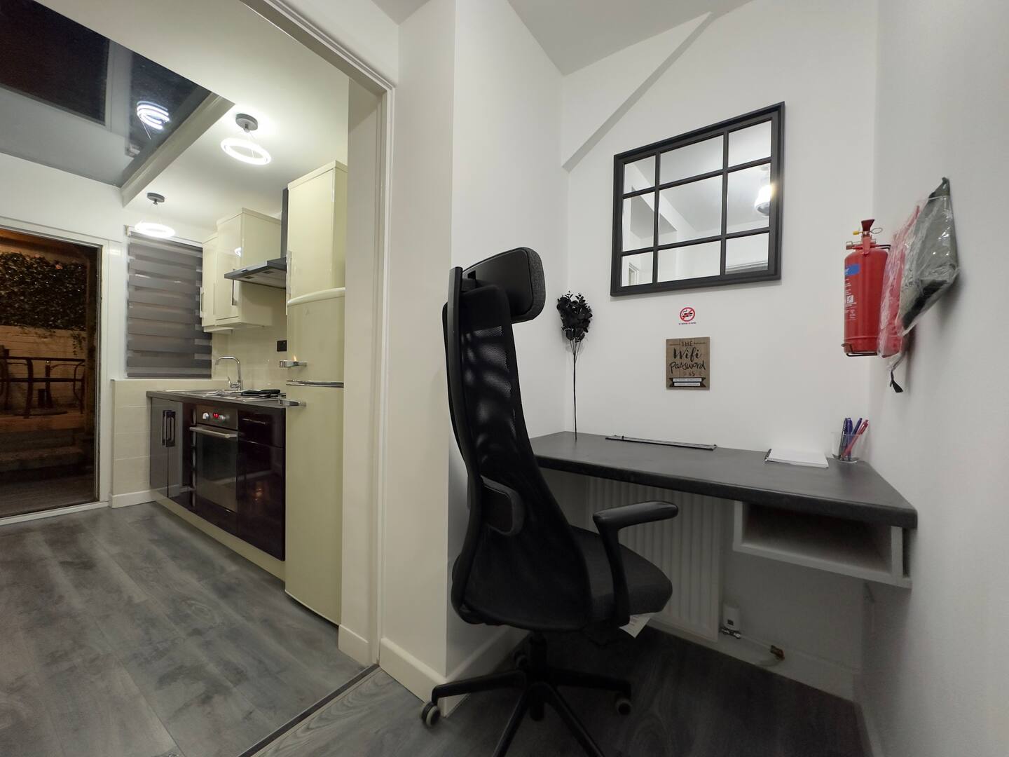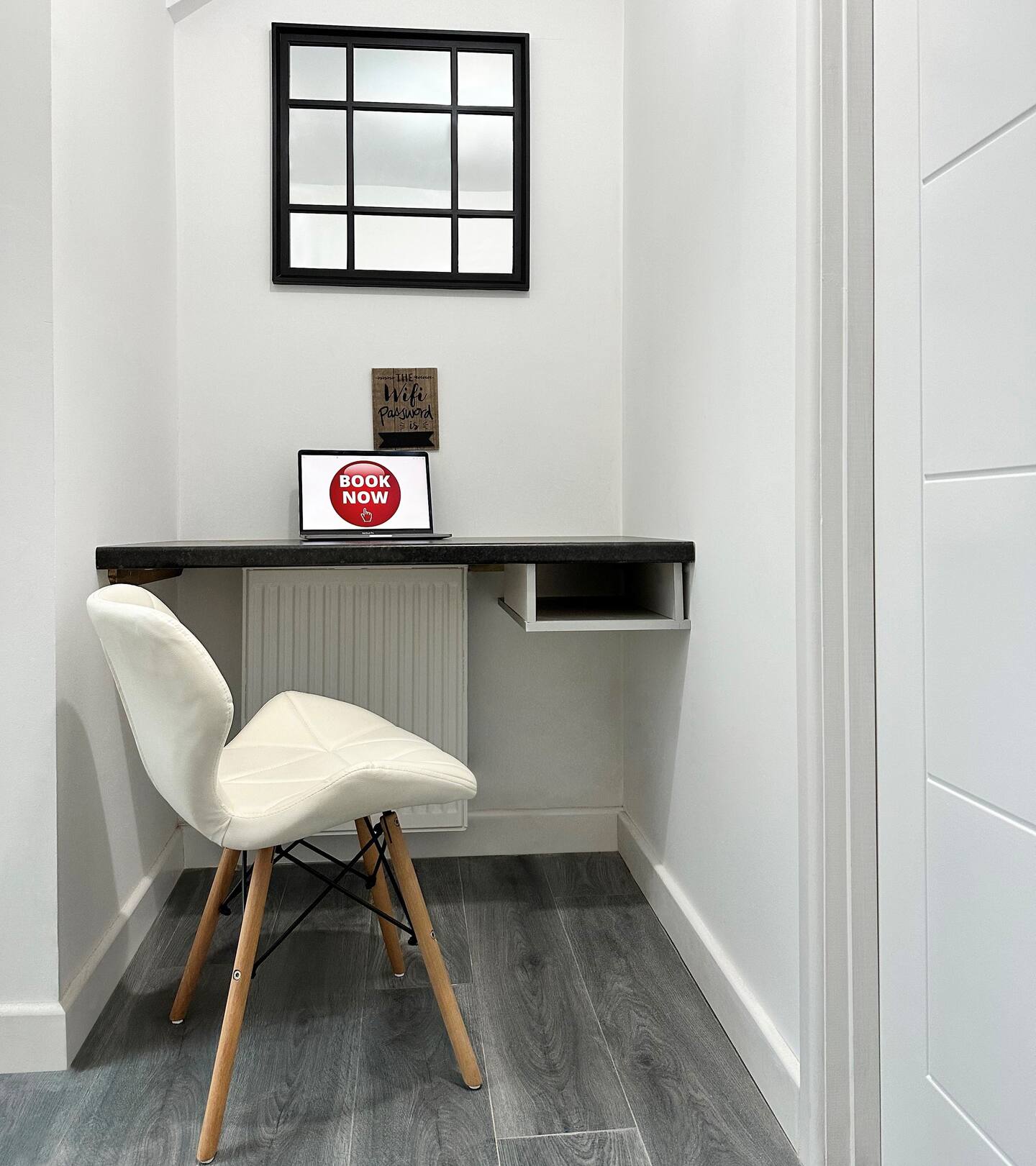 Mini office. There is dedicated workspace situated at the end of the hallway.