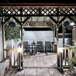 Walk through the kitted gallery style kitchen which leads to a walk-out illuminated Gazebo and decorated garden which offers ample seating. Be sure to capture the stunning scenery of the welsh mountain valley which can be seen from the garden.