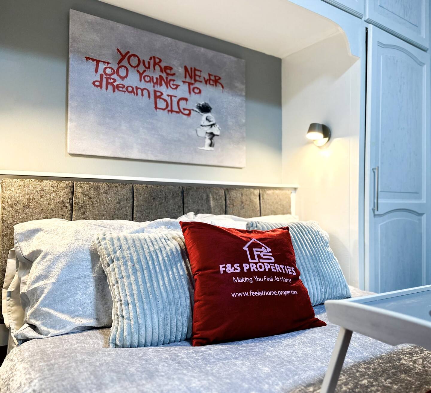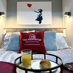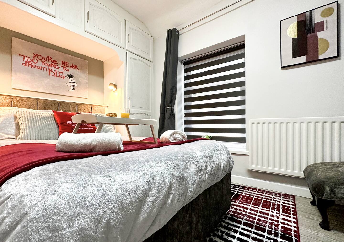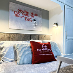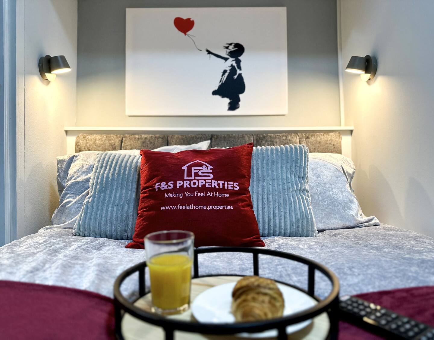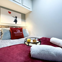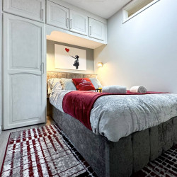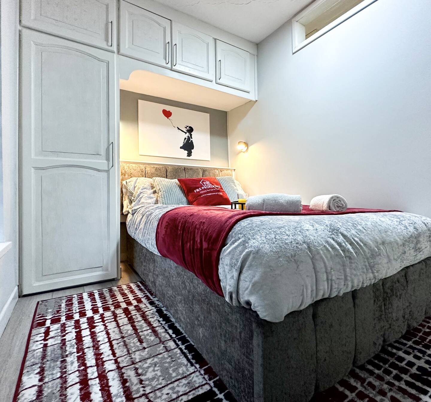 Both double bedrooms boast double beds with plush cushions for ultimate coziness. A SMART TV, mood lighting and ample storage for personal belongings. Bansky artwork bring contemporary life to the rooms.