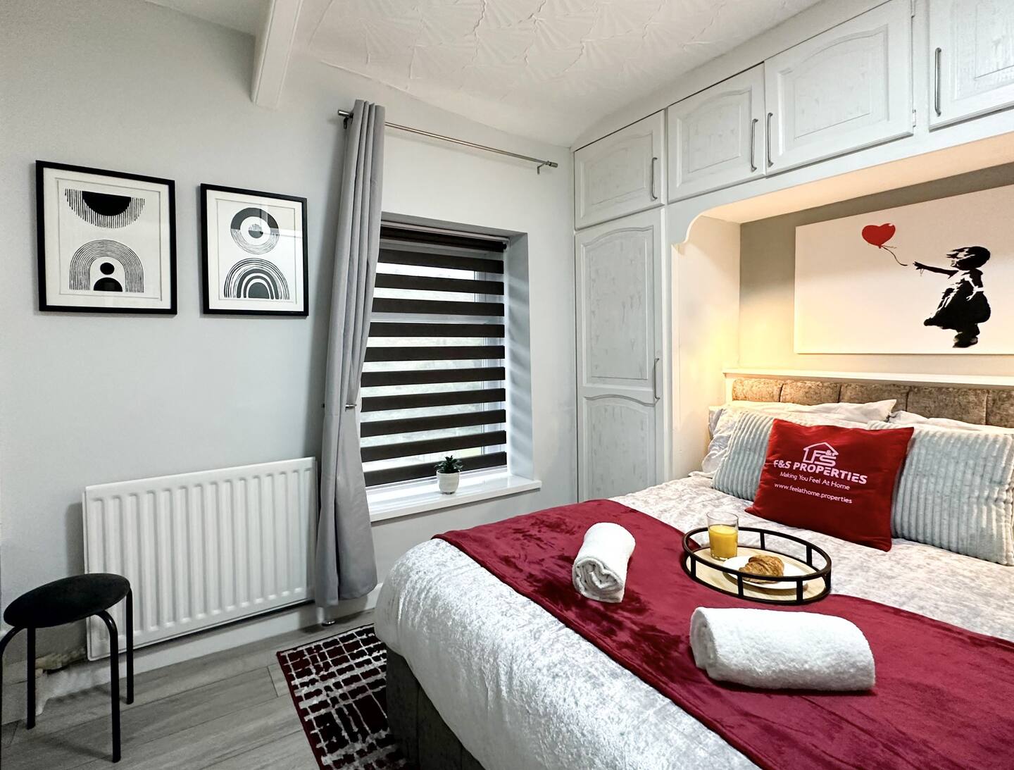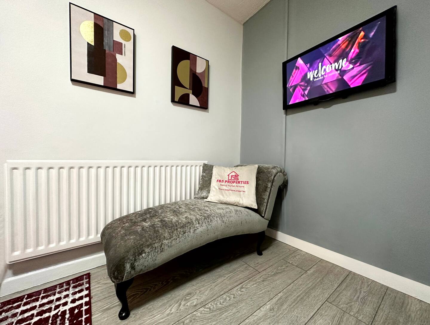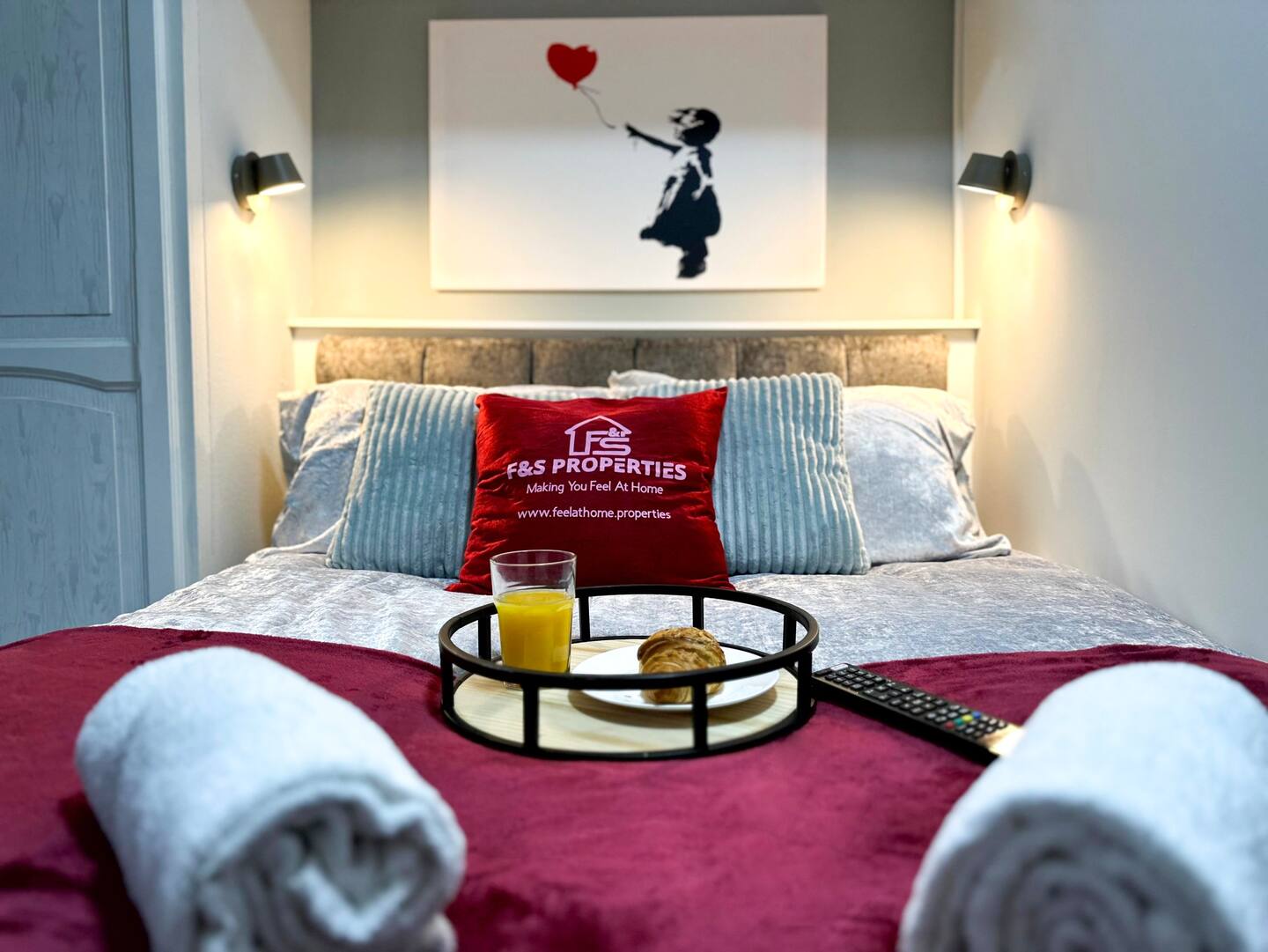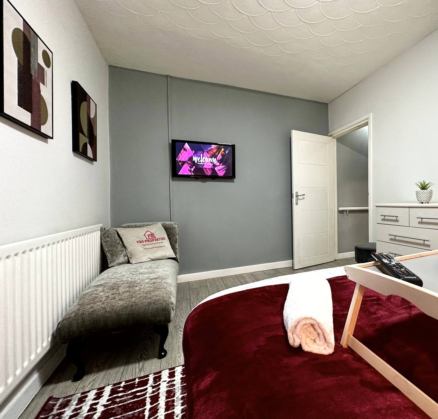 Both double bedrooms boast double beds with plush cushions for ultimate coziness. A SMART TV, mood lighting and ample storage for personal belongings. Bansky artwork bring contemporary life to the rooms.
