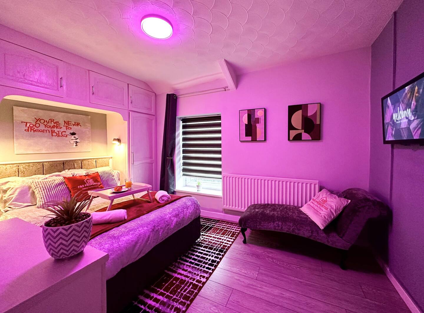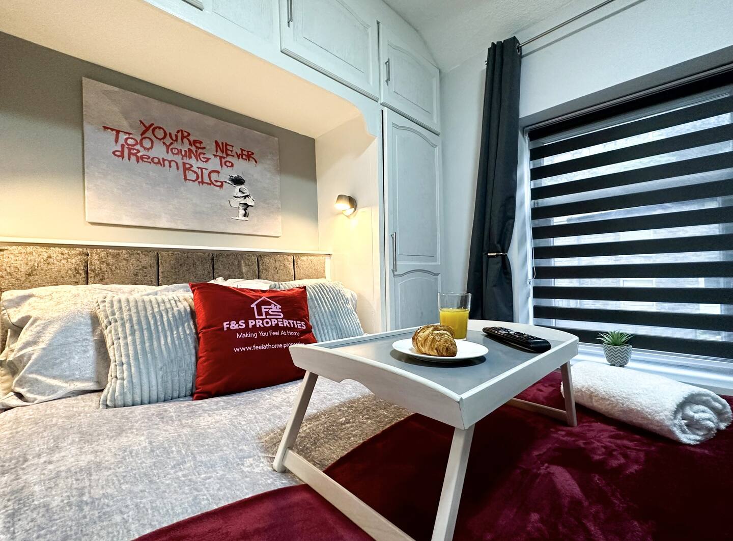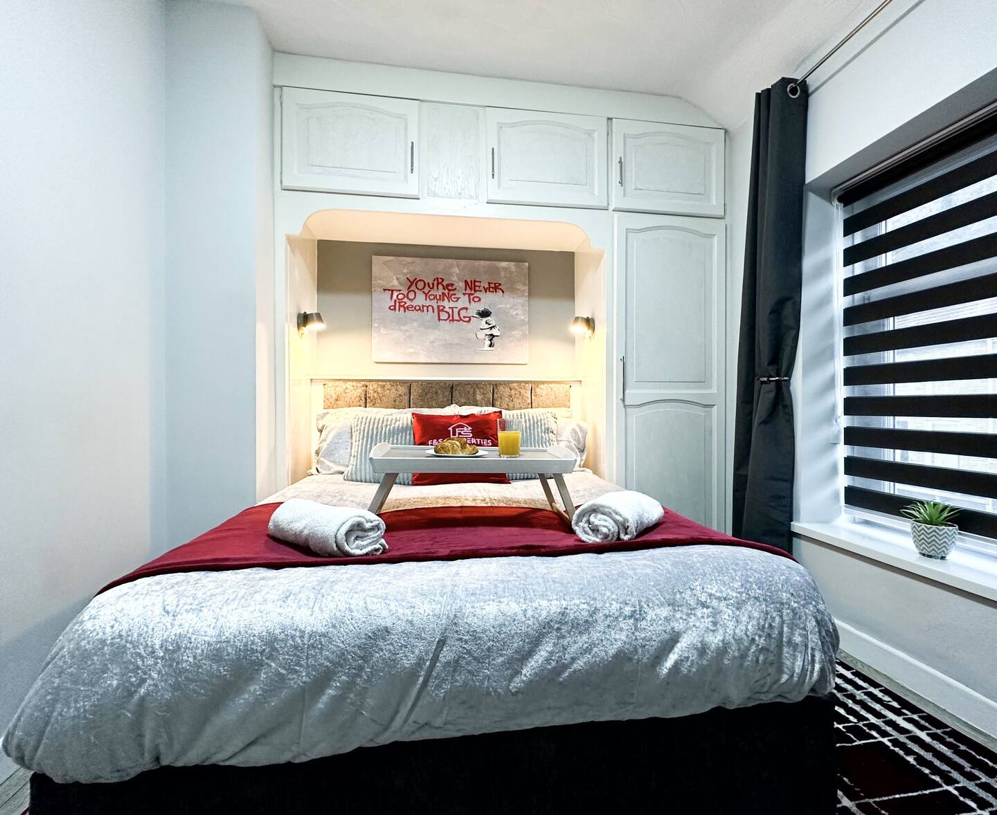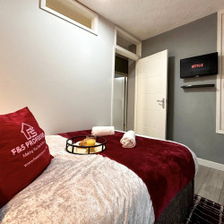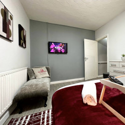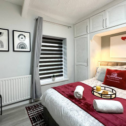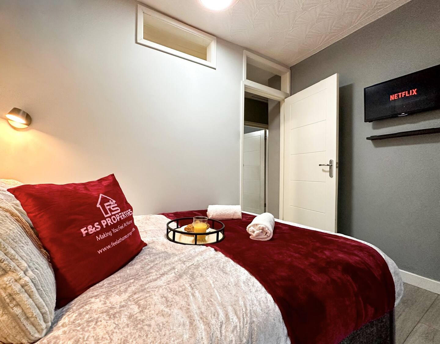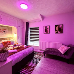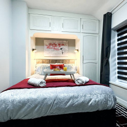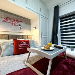 Both double bedrooms boast double beds with plush cushions for ultimate coziness. A SMART TV, mood lighting and ample storage for personal belongings. Bansky artwork bring contemporary life to the rooms.