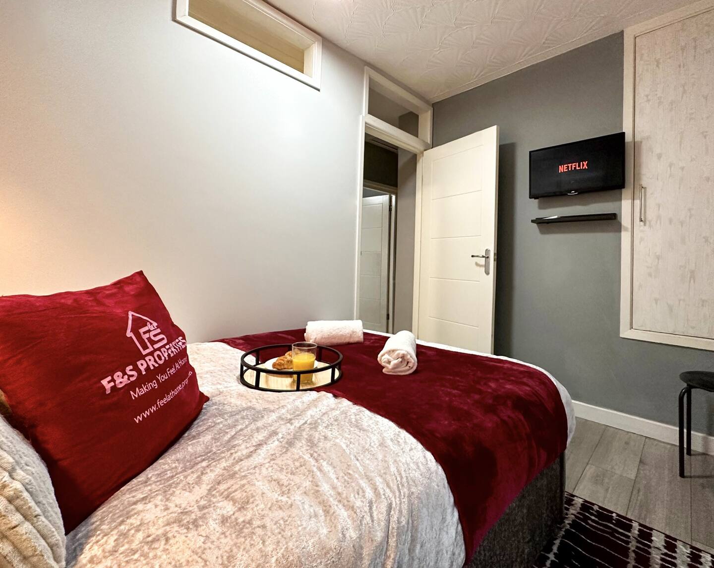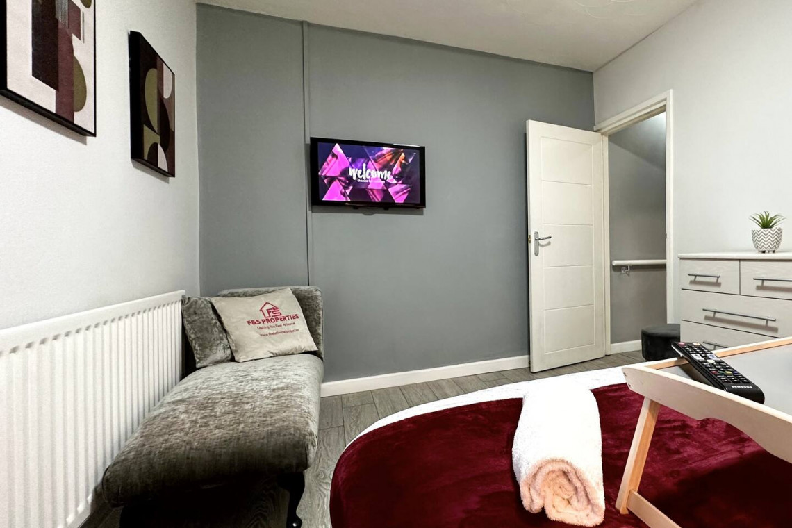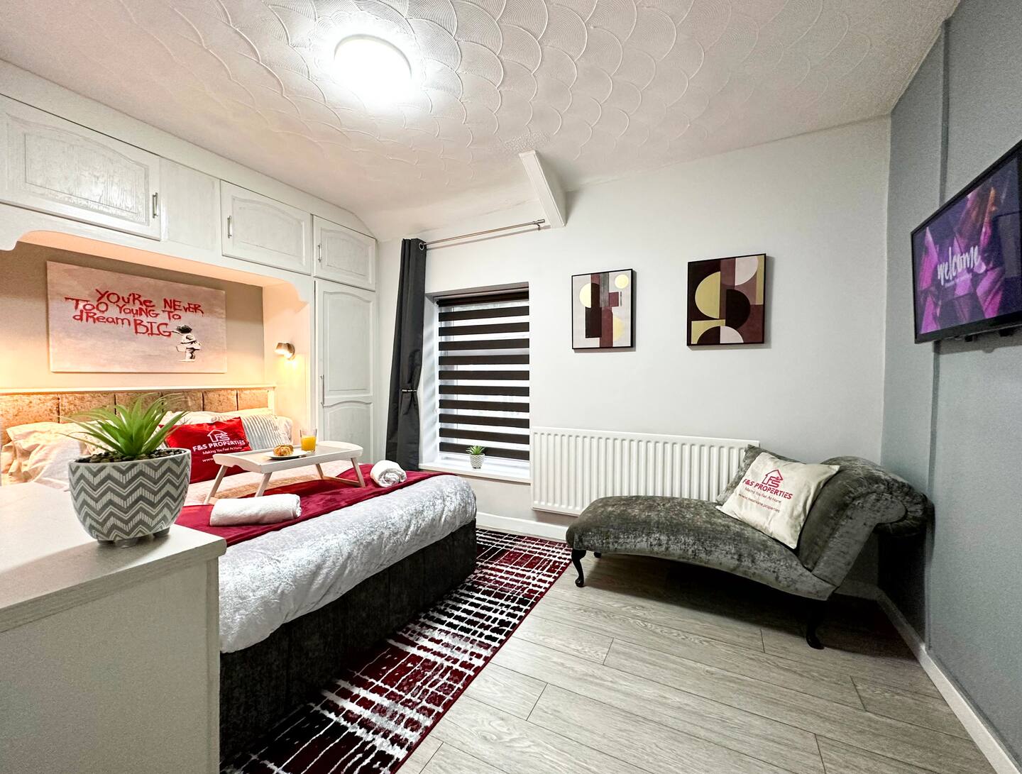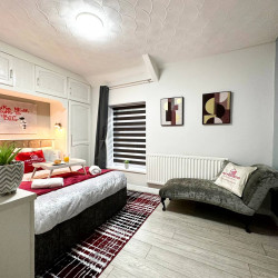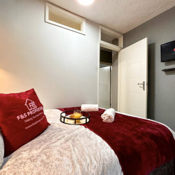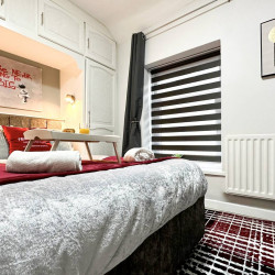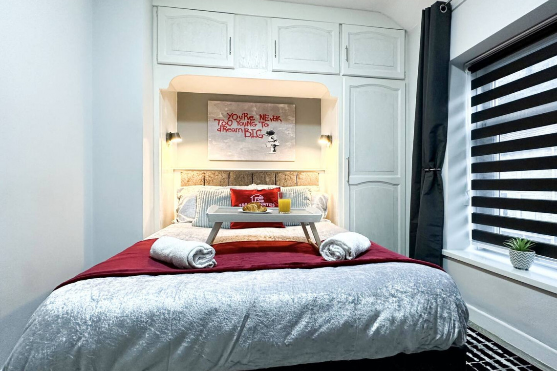 Both double bedrooms boast double beds with plush cushions for ultimate coziness. A SMART TV, mood lighting and ample storage for personal belongings. Bansky artwork bring contemporary life to the rooms.