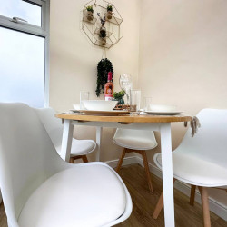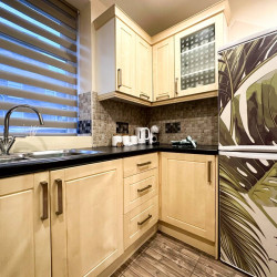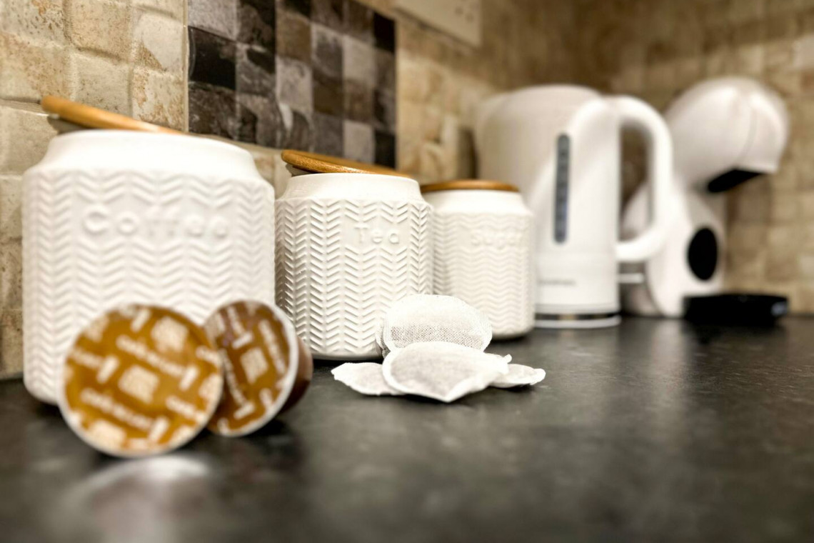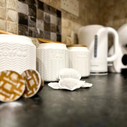 This home has a fully equipped kitchen, to include features such as Dolce Gusto coffee machine and a variety of Nescafé pods for the coffee connoisseurs in your group. Complimentary Tea bags are also provided.