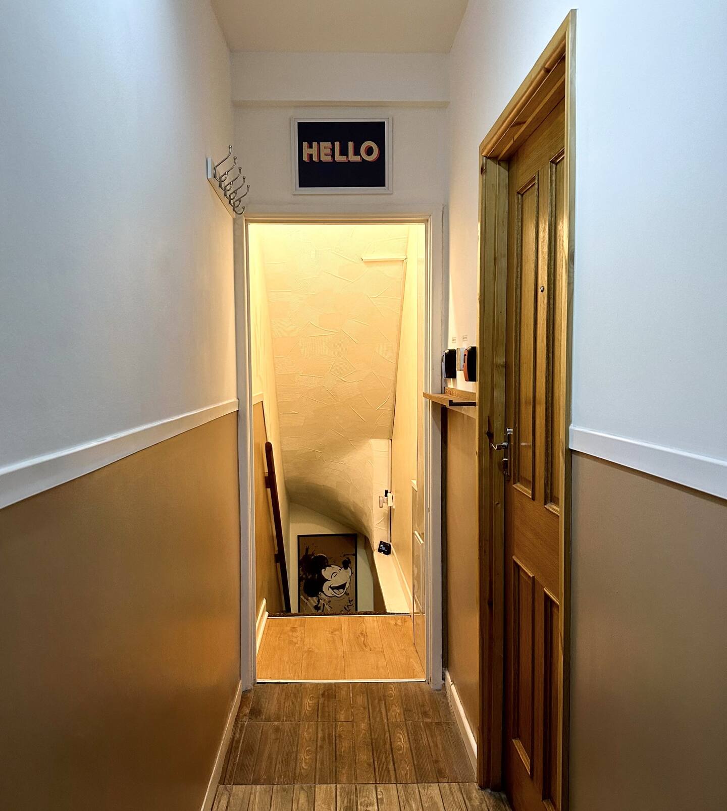 The entrance to the house is granted via a secure communal door at the front of the building. The access to the house is presented in the communal hallway on the ground floor.