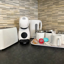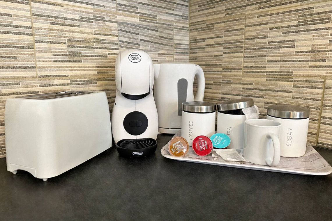 A fully stocked kitchen awaits to include features such as a Dolce Gusto coffee machine and a variety of Nescafé pods for the coffee connoisseurs in your group. Complimentary Tea bags are also provided.