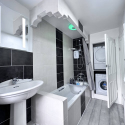 There is a full bathroom suite with clothes washer and dryer facilities.