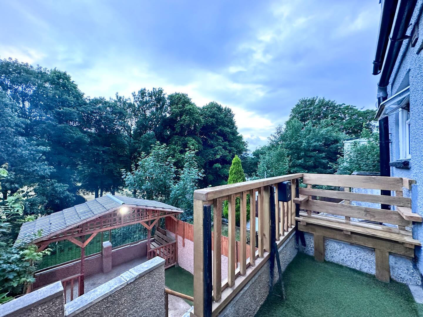 The well lit garden gazebo area makes for the perfect place to take in the 180 views with a calming glass of wine!