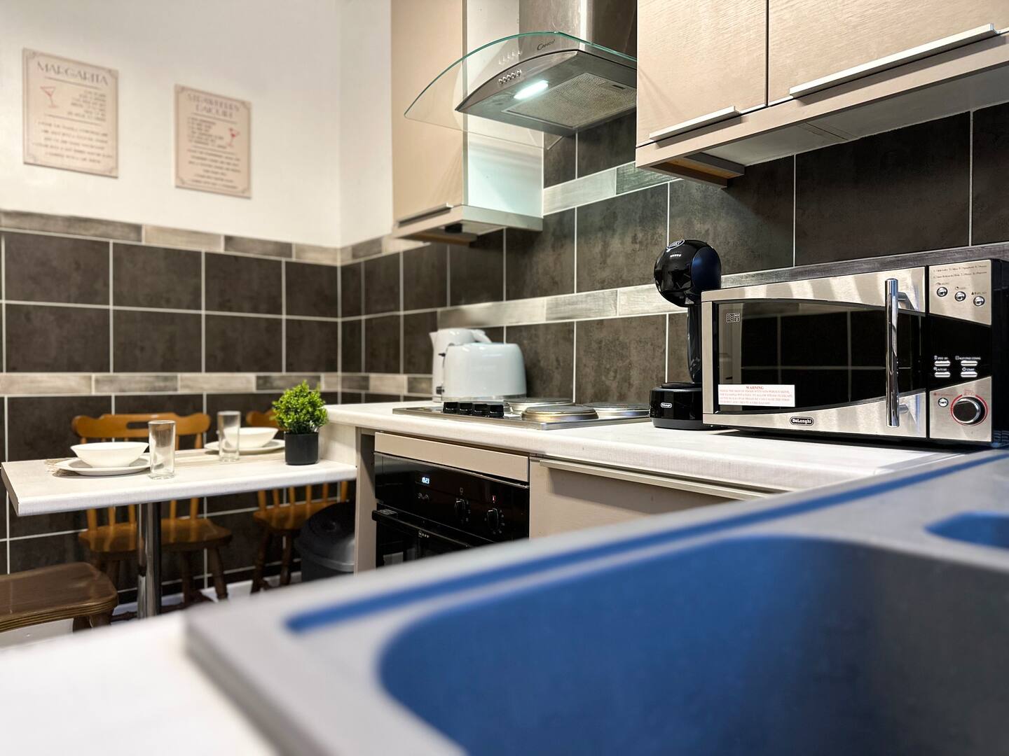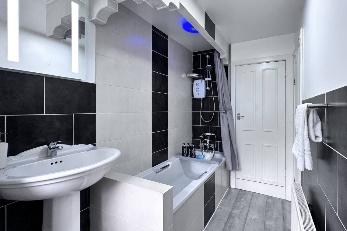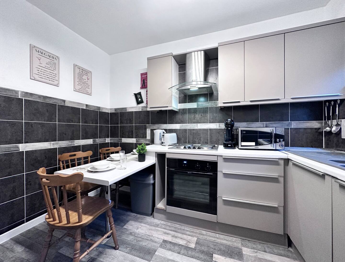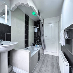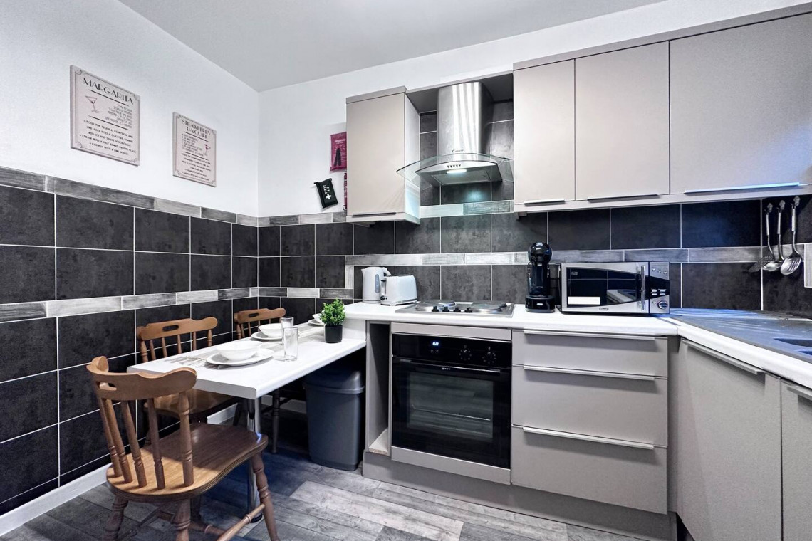 The apartment has a fully equipped kitchen, to include features such as Dolce Gusto coffee machine and a variety of Nescafé pods for the coffee connoisseurs in your group. Complimentary Tea bags are also provided.