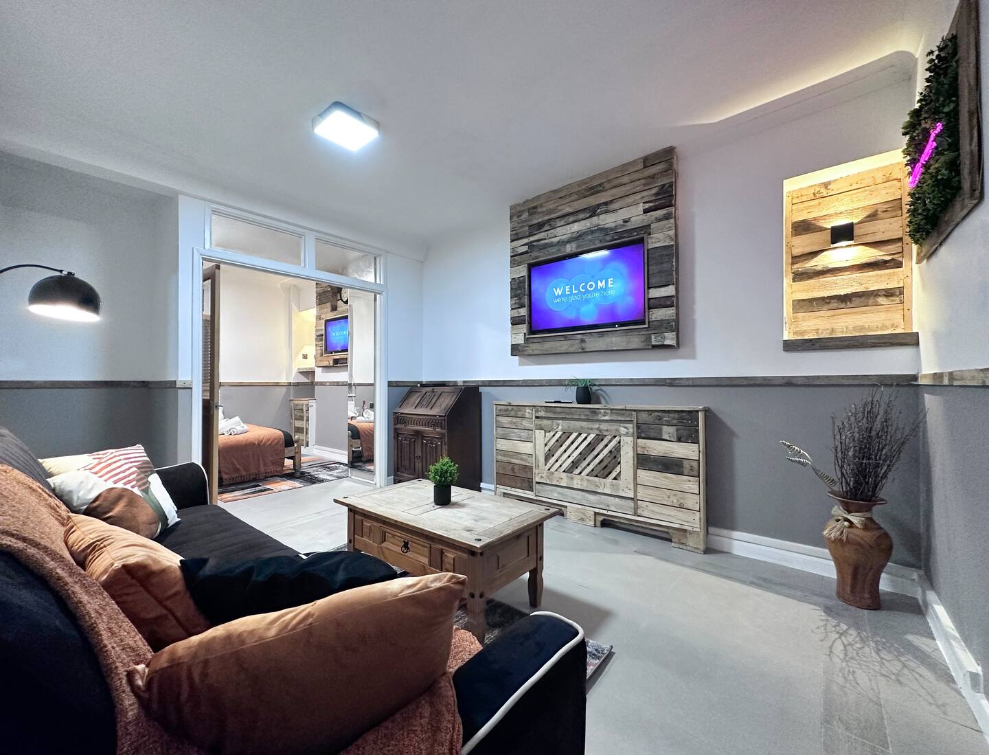 Take delight in this Newly Refurbished rustic pallet wood styled contemporary apartment.