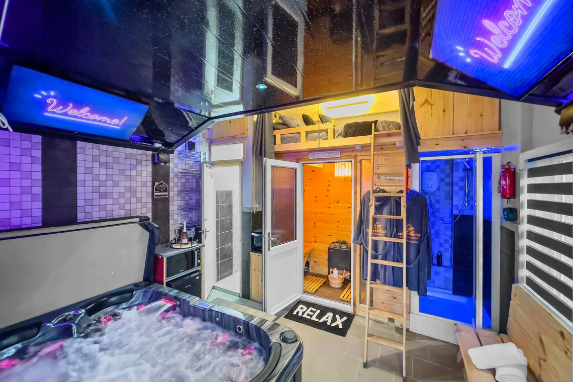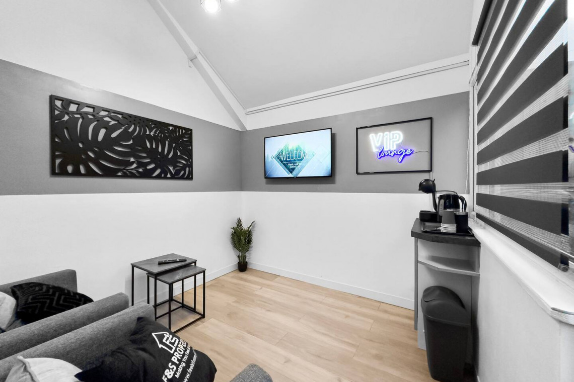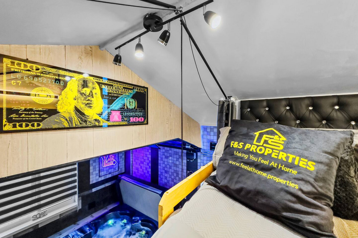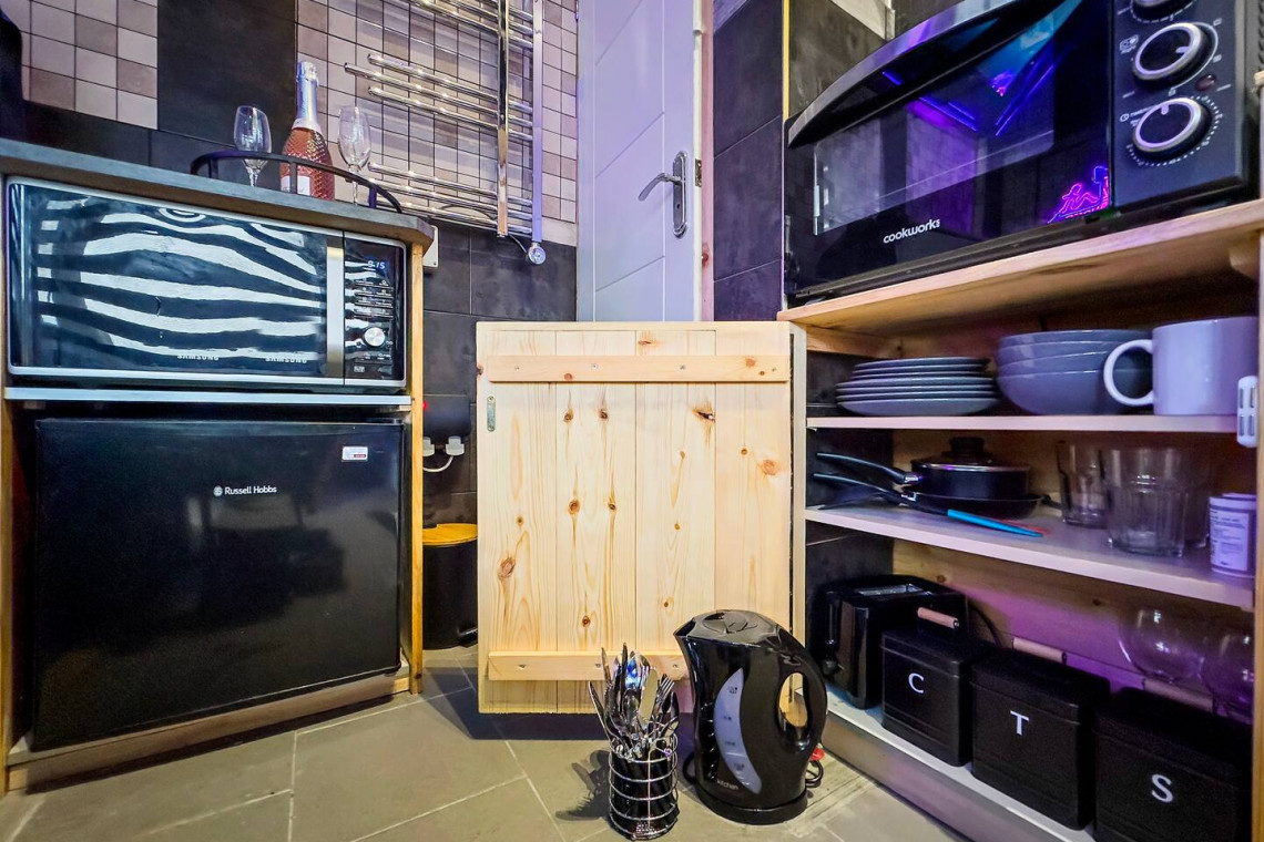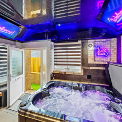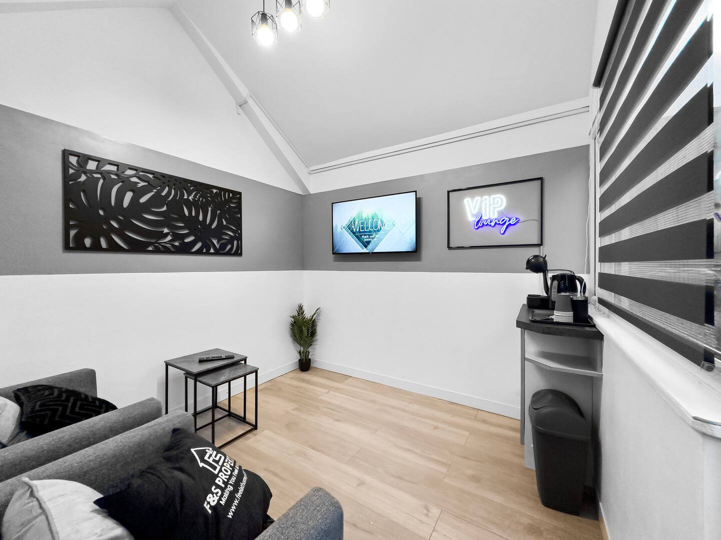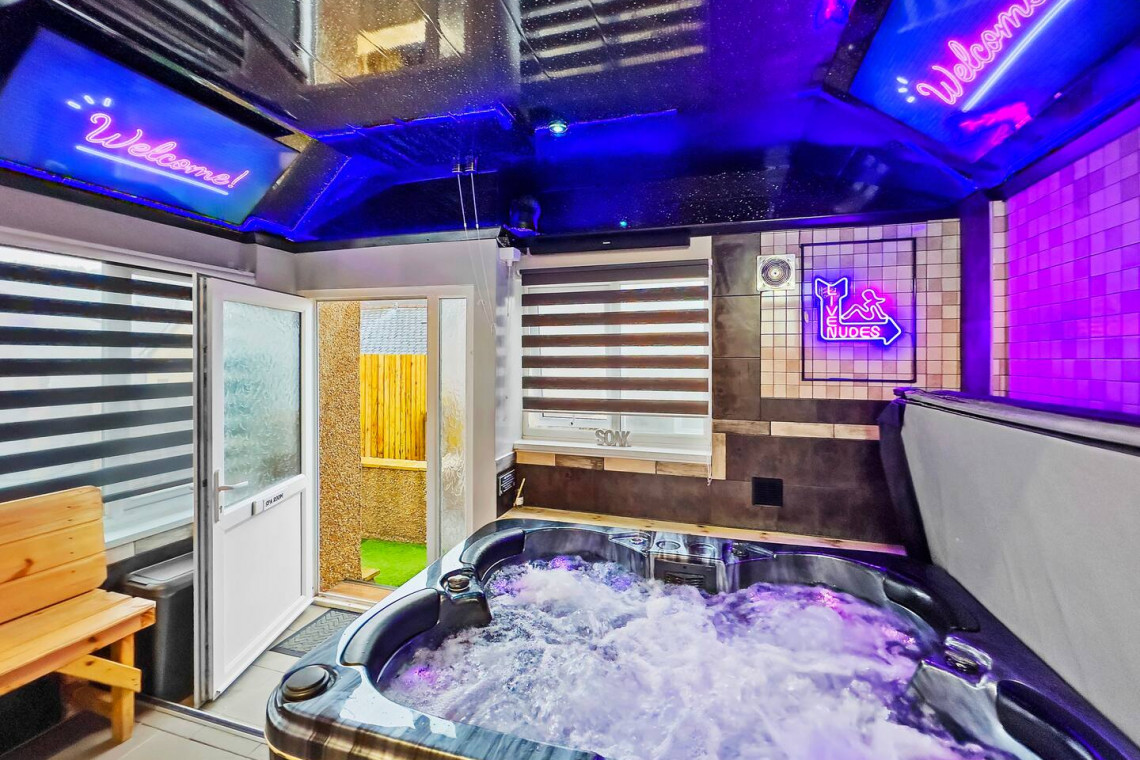 Welcome to our spa apartment retreat – where comfort, calm and good vibes meet. Escape the daily hustle in your private hot tub and sauna, surrounded by relaxing neon mood lighting. Enjoy multiple Smart TVs throughout. The cozy loft bed (2.4m high) is set in the spa-style wet room. A separate VIP dry lounge offers added comfort. Perfect for a romantic stay, spa weekend, or relaxing break. Quirky Space!