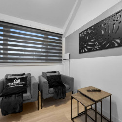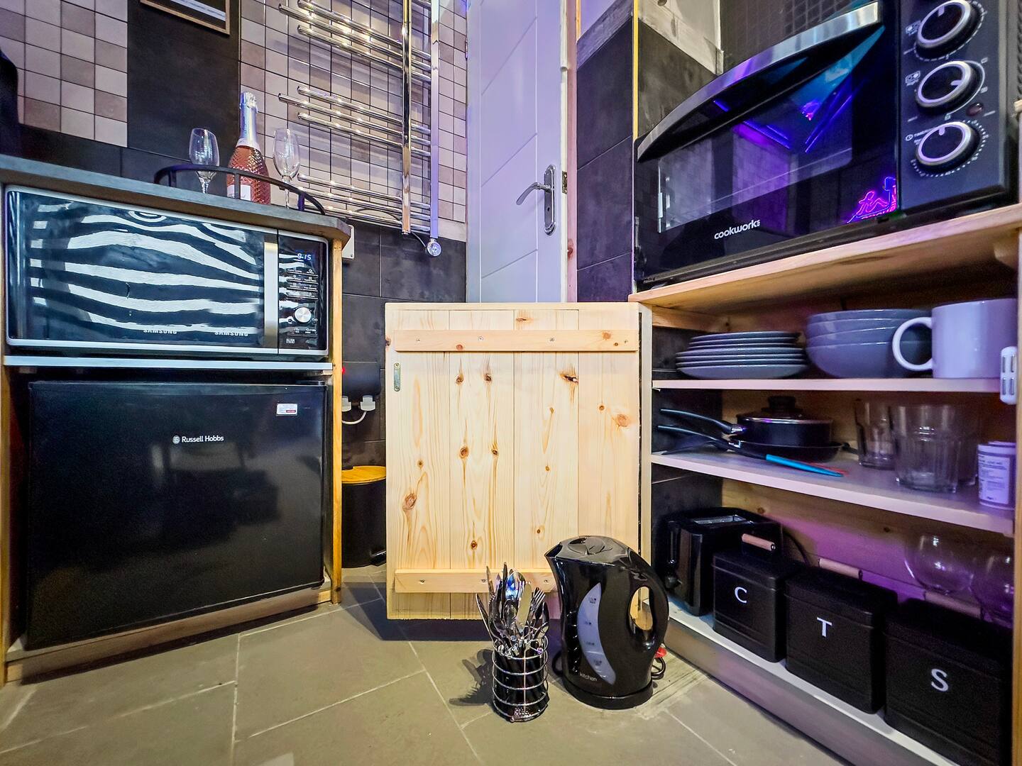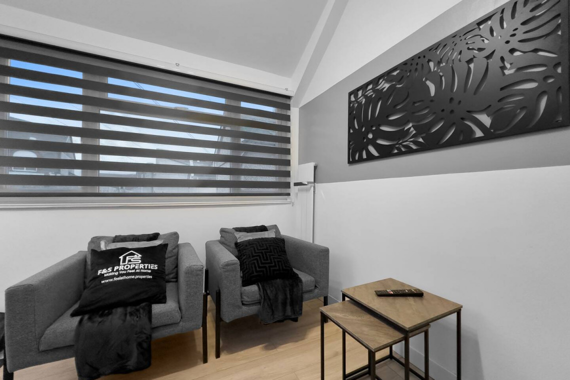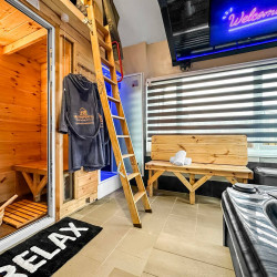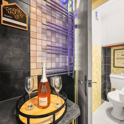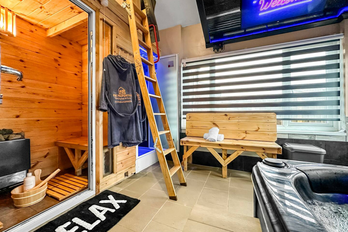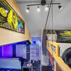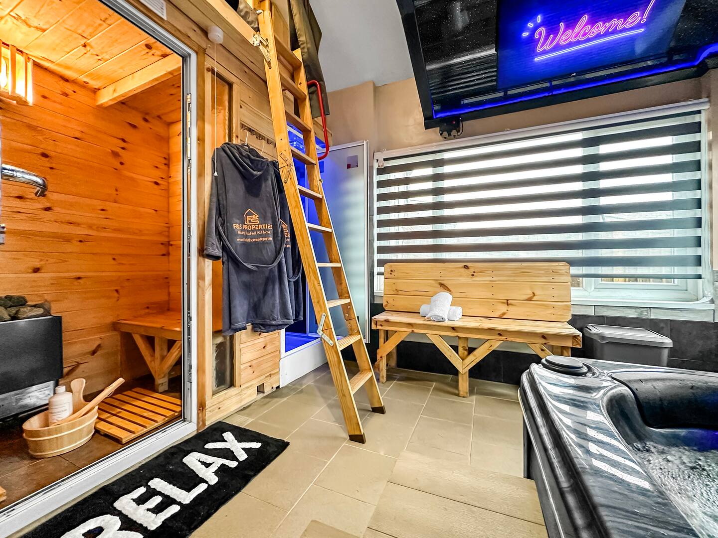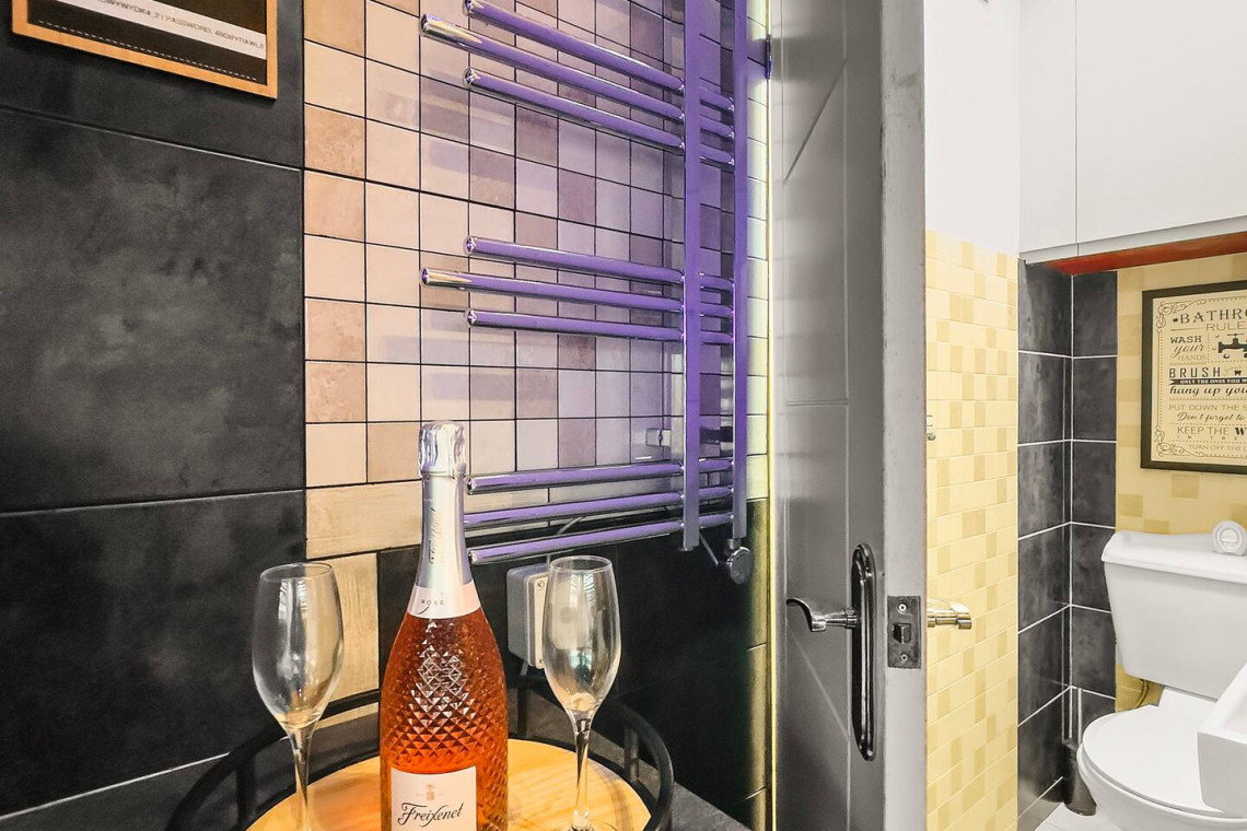 Welcome to our spa apartment retreat – where comfort, calm and good vibes meet. Escape the daily hustle in your private hot tub and sauna, surrounded by relaxing neon mood lighting. Enjoy multiple Smart TVs throughout. The cozy loft bed (2.4m high) is set in the spa-style wet room. A separate VIP dry lounge offers added comfort. Perfect for a romantic stay, spa weekend, or relaxing break. Quirky Space!