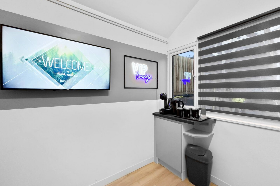 The space is a ‘wet room’ environment, it can get humid and steamy when hot tub in operation. good vibes and relaxation intertwine at every turn. Nestled in our uniquely designed spa-inspired haven, escape the daily hustle and melt away stress in your private ‘Hot Tub’ and ‘Sauna’, enveloped in soothing neon mood lighting.