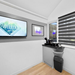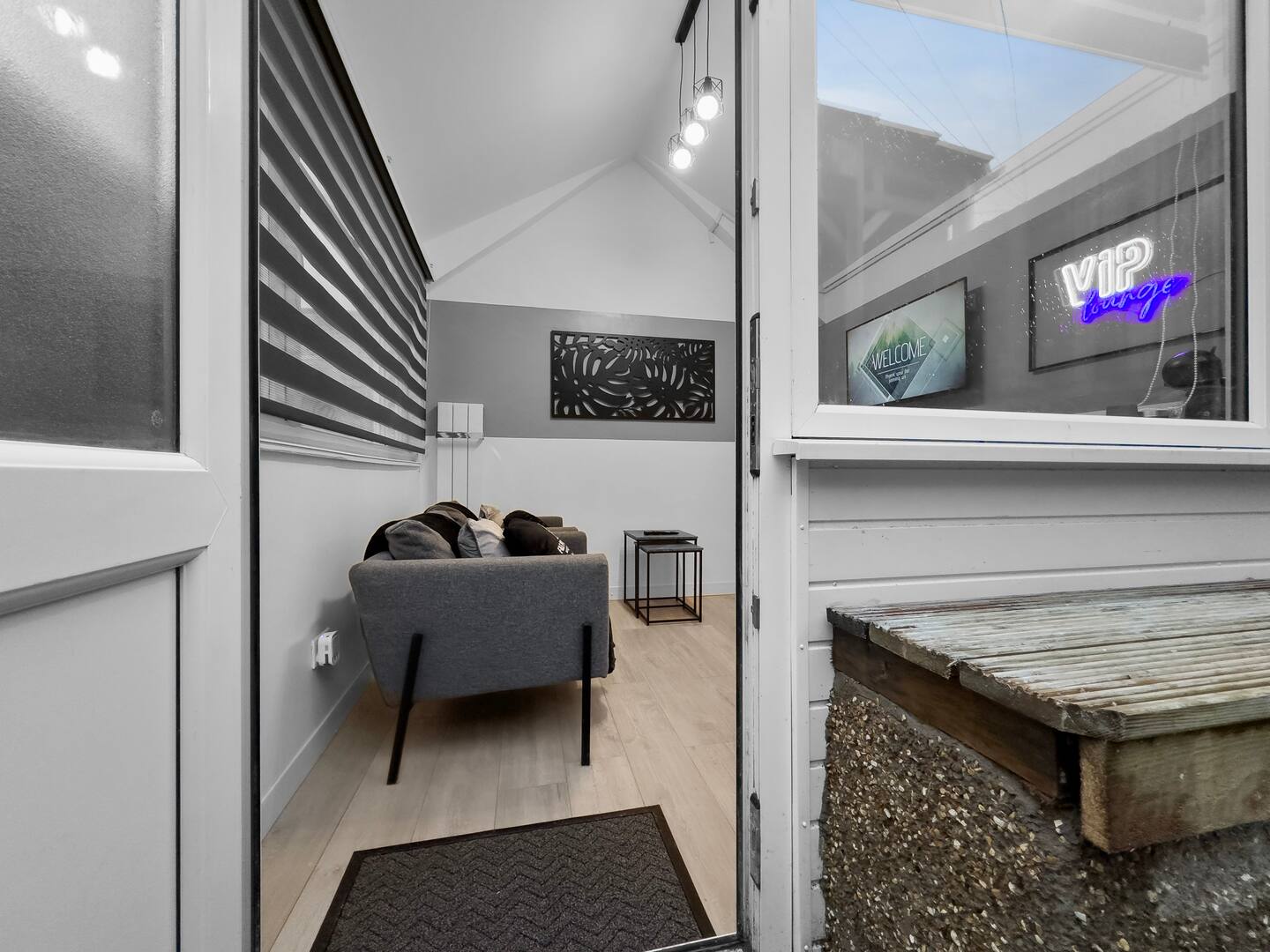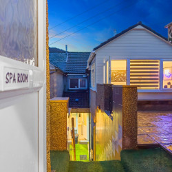 Entry to the spa space is through a well-illuminated alley, guiding you to the secure rear entrance of the property.