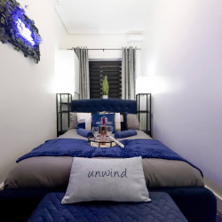 The bedroom has been set up with ‘Cosy’ in mind and allow for you to leave your troubles behind and experience peace and happiness. Be prepared for plush blankets and cuddle worthy pillows.