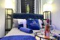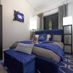 The bedroom has been equipped with a wardrobe, ample storage, mood lamps for reading as well as ambiance, and day night zebra blinds for privacy.