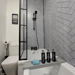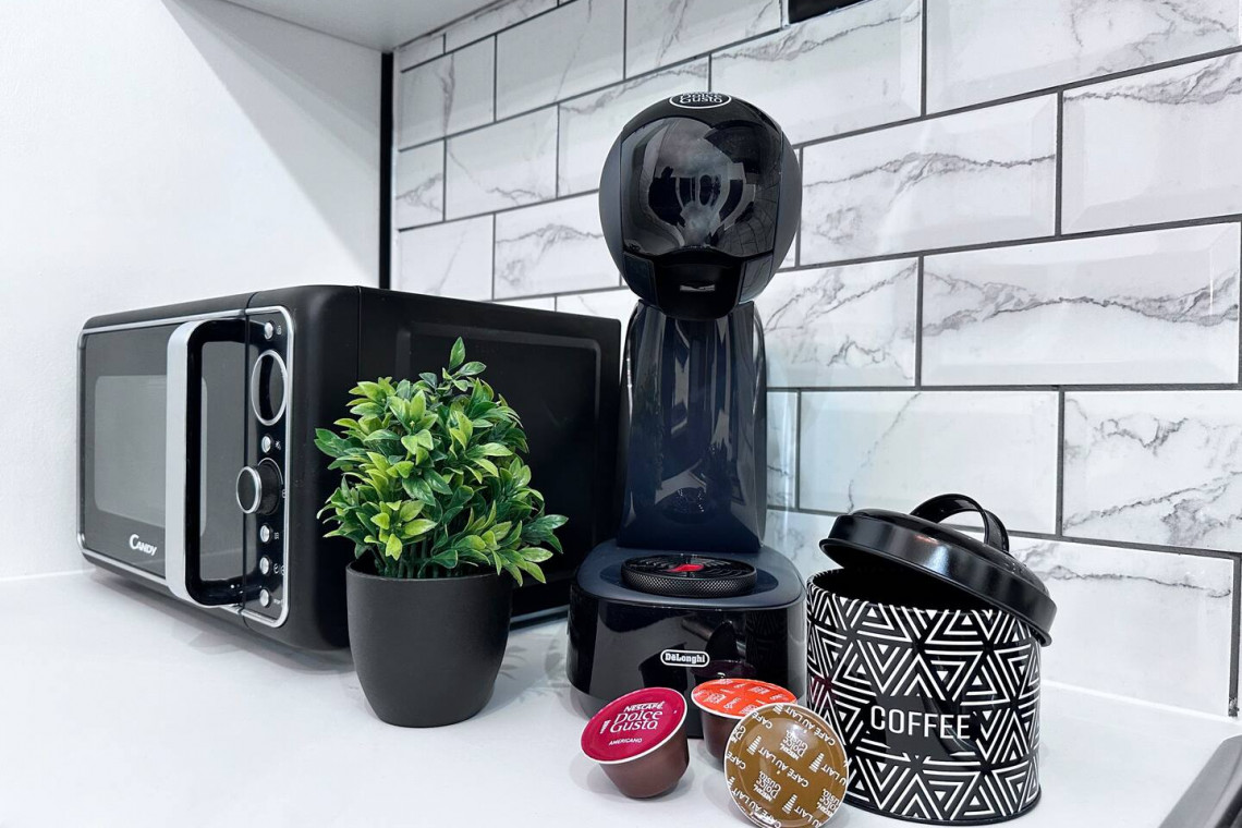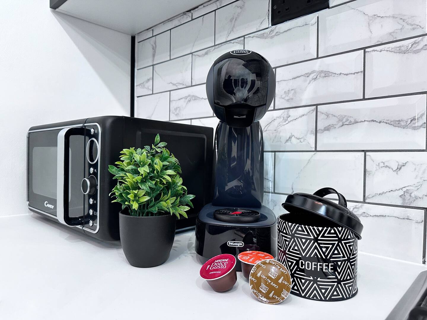 A fully equipped kitchen awaits to include features such as a washer dryer, Dolce Gusto coffee machine and a variety of Nescafé pods for the coffee connoisseurs in your group. Complimentary Tea bags are also provided.