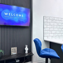 The living space is open plan and flows into the kitchen area, uncluttered and versatile. It includes a large flatscreen Smart TV and a dining area which can also be used as a workstation.